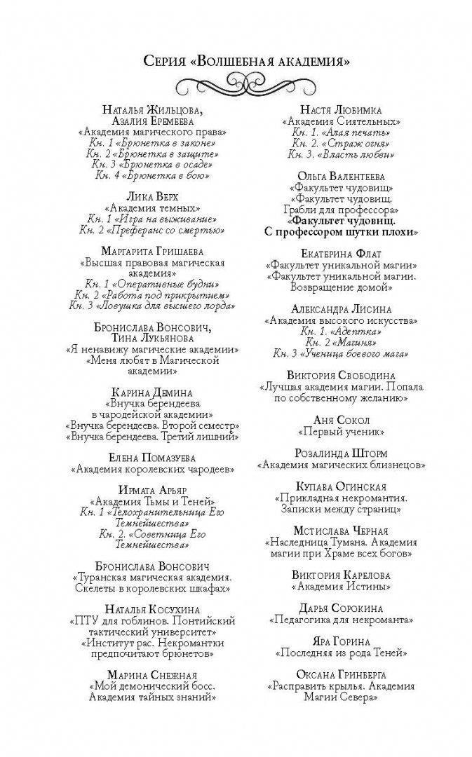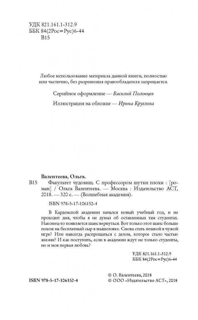 ---Ольга Валентеева: Факультет чудовищ. С профессором шутки плохиРусская классическая и современная литератураЗарубежная художественная литератураРусская художественная литератураФэнтезиДраматургияПоэзияПриключенияФантастикаЭпос и фольклорКлассическая прозаАфоризмыИсторическая прозаДетективыБасниСентиментальная прозаОтечественный боевикСовременная прозаМолодежная литератураЗарубежная классическая и современная литература