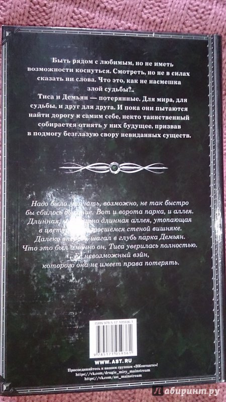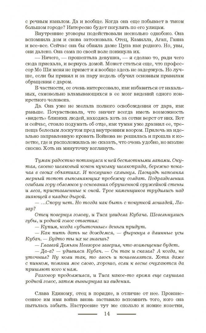 ОписаниеБыть рядом с любимым, но не иметь возможности коснуться. Смотреть, но не в силах сказать ни слова. Что это, как не насмешка злой судьбы?..Тиса и Демьян - потерянные. Для мира, для судьбы, и друг для друга. И пока они пытаются найти дорогу к самим себе, некто таинственный собирается отнять у них будущее, призвав в подмогу безглазую свору невиданных существ.Быть рядом с любимым, но не иметь возможности коснуться. Смотреть, но не в силах сказать ни слова. Что это, как не насмешка злой судьбы?..Тиса и Демьян - потерянные. Для мира, для судьбы, и друг для друга. И пока они пытаются найти дорогу к самим себе, некто таинственный собирается отнять у них будущее, призвав в подмогу безглазую свору невиданных существ.