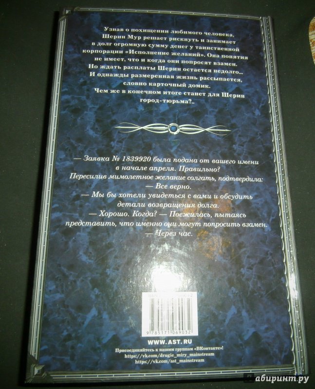 ОписаниеУзнав о похищении любимого человека, Шерин Мур решает рискнуть и занимает в долг огромную сумму денег у таинственной корпорации "Исполнение желаний". Она понятия не имеет, что и когда они попросят взамен. Но ждать расплаты Шерин остается недолго... И однажды размеренная жизнь рассыпается, словно карточный домик. Чем же в конечном итоге станет для Шерин город-тюрьма?..Узнав о похищении любимого человека, Шерин Мур решает рискнуть и занимает в долг огромную сумму денег у таинственной корпорации "Исполнение желаний". Она понятия не имеет, что и когда они попросят взамен. Но ждать расплаты Шерин остается недолго... И однажды размеренная жизнь рассыпается, словно карточный домик. Чем же в конечном итоге станет для Шерин город-тюрьма?..