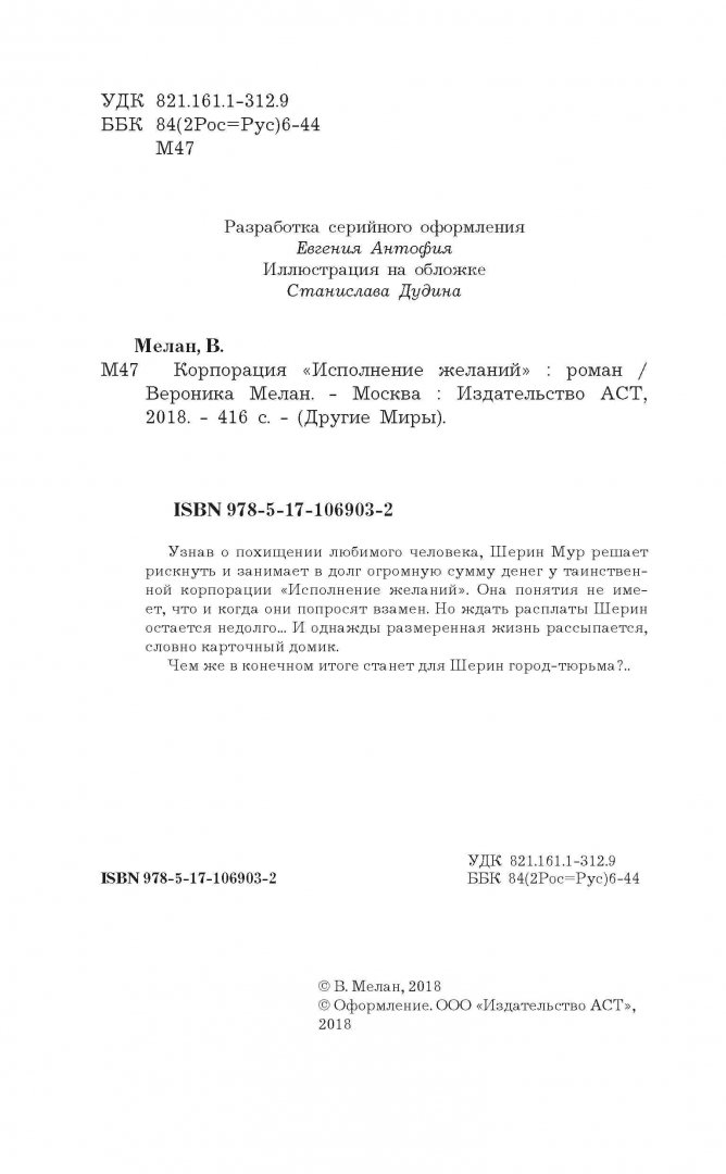---Вероника Мелан: Корпорация "Исполнение желаний"Русская классическая и современная литератураЗарубежная художественная литератураРусская художественная литератураФэнтезиДраматургияПоэзияПриключенияФантастикаЭпос и фольклорКлассическая прозаАфоризмыИсторическая прозаДетективыБасниСентиментальная прозаОтечественный боевикСовременная прозаМолодежная литератураЗарубежная классическая и современная литература