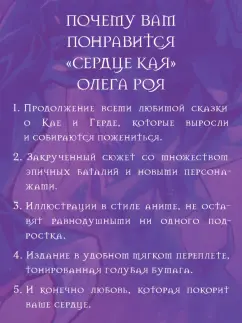 ОписаниеЛюбимые герои детства - Кай и Герда - возвращаются на страницах напряжённого и непредсказуемого, магического и приключенческого фэнтезийного романа Олега Роя "Сердце Кая". Им вновь предстоит защитить свой мир и спасти друг друга от холодной смерти.Любимые герои детства - Кай и Герда - возвращаются на страницах напряжённого и непредсказуемого, магического и приключенческого фэнтезийного романа Олега Роя "Сердце Кая". Им вновь предстоит защитить свой мир и спасти друг друга от холодной смерти.