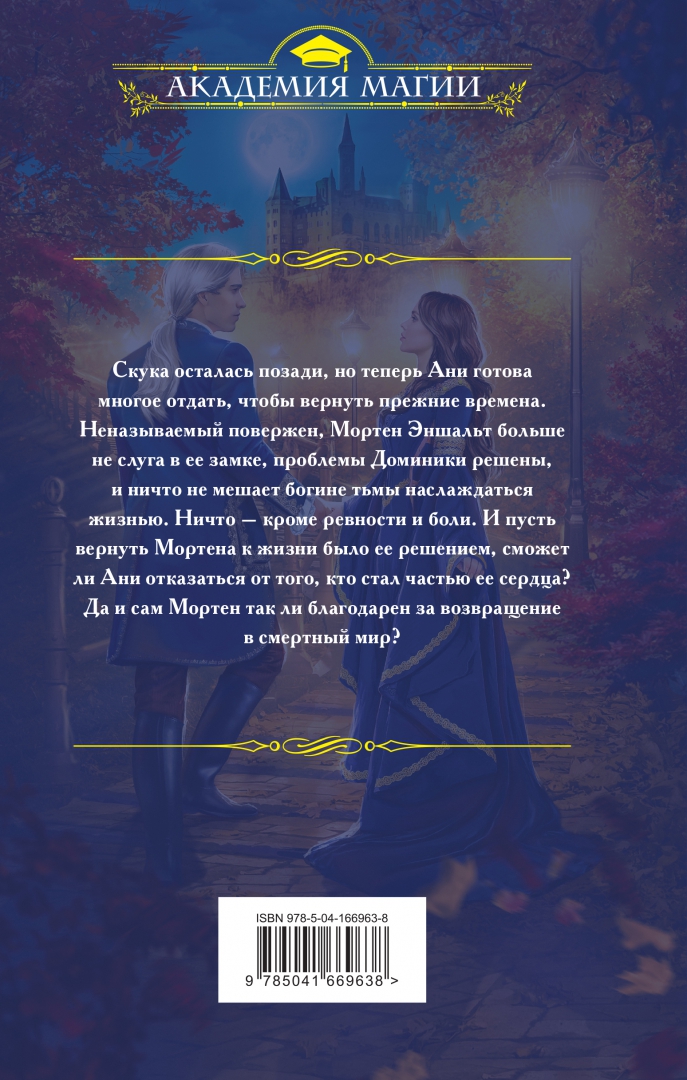 ОписаниеСкука осталась позади, но теперь Ани готова многое отдать, чтобы вернуть прежние времена. Неназываемый повержен, Мортен Эншальт больше не слуга в ее замке, проблемы Доминики решены, и ничто не мешает богине тьмы наслаждаться жизнью. Ничто — кроме ревности и боли. И пусть вернуть Мортена к жизни было ее решением, сможет ли Ани отказаться от того, кто стал частью ее сердца? Да и сам Мортен так ли благодарен за возвращение в смертный мир?Скука осталась позади, но теперь Ани готова многое отдать, чтобы вернуть прежние времена. Неназываемый повержен, Мортен Эншальт больше не слуга в ее замке, проблемы Доминики решены, и ничто не мешает богине тьмы наслаждаться жизнью. Ничто — кроме ревности и боли. И пусть вернуть Мортена к жизни было ее решением, сможет ли Ани отказаться от того, кто стал частью ее сердца? Да и сам Мортен так ли благодарен за возвращение в смертный мир?