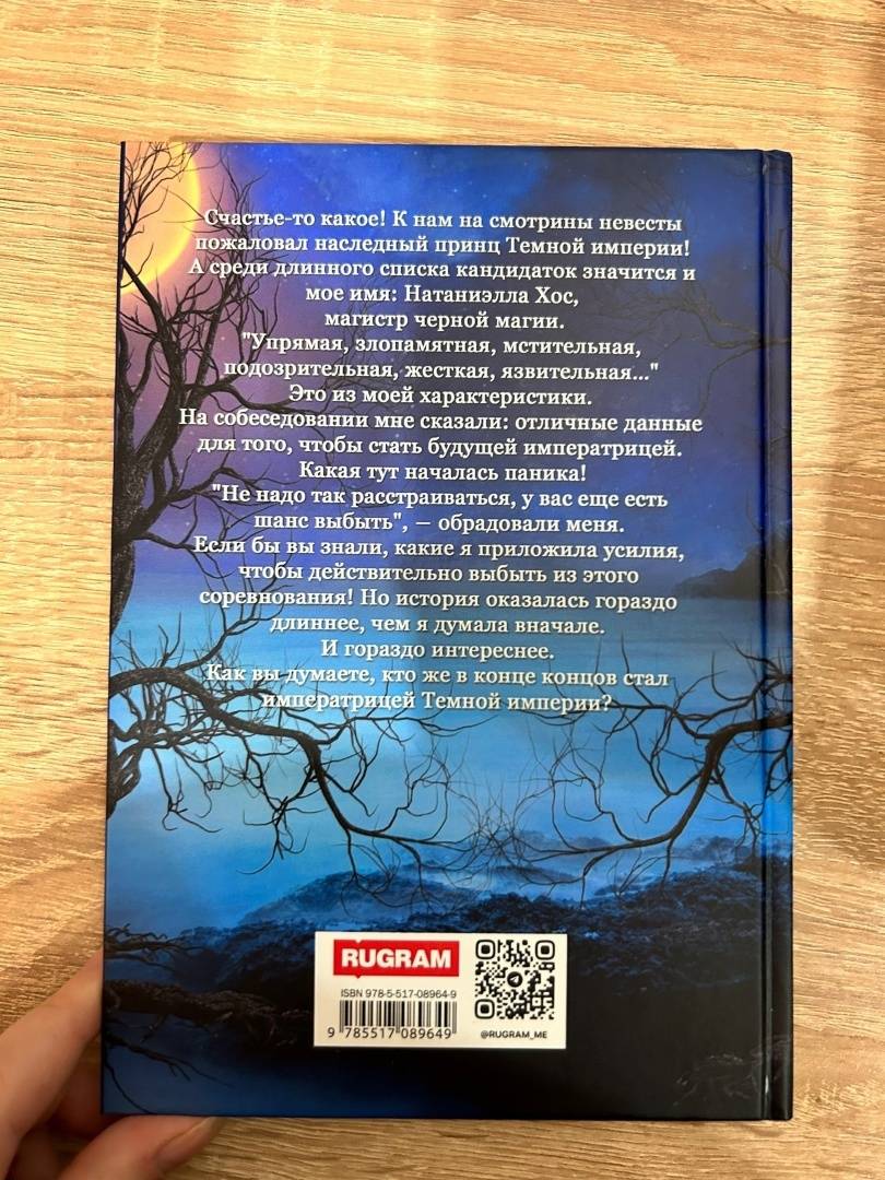 ОписаниеСчастье-то какое! К нам на смотрины невесты пожаловал наследный принц Темной империи! А среди длинного списка кандидаток значится и мое имя: Натаниэлла Хос, магистр черной магии. «Упрямая, злопамятная, мстительная, подозрительная, жесткая, язвительная...» Это из моей характеристики. На собеседовании мне сказали: отличные данные для того, чтобы стать будущей императрицей. Какая тут началась паника! «Не надо так расстраиваться, у вас еще есть шанс выбыть», — обрадовали меня.Если бы вы знали, какие я приложила усилия, чтобы действительно выбыть из этого соревнования! Но история оказалась гораздо длиннее, чем я думала вначале. И гораздо интереснее. Как вы думаете, кто же в конце концов стал императрицей Темной империи?Счастье-то какое! К нам на смотрины невесты пожаловал наследный принц Темной империи! А среди длинного списка кандидаток значится и мое имя: Натаниэлла Хос, магистр черной магии. «Упрямая, злопамятная, мстительная, подозрительная, жесткая, язвительная...» Это из моей характеристики. На собеседовании мне сказали: отличные данные для того, чтобы стать будущей императрицей. Какая тут началась паника! «Не надо так расстраиваться, у вас еще есть шанс выбыть», — обрадовали меня.Если бы вы знали, какие я приложила усилия, чтобы действительно выбыть из этого соревнования! Но история оказалась гораздо длиннее, чем я думала вначале. И гораздо интереснее. Как вы думаете, кто же в конце концов стал императрицей Темной империи?