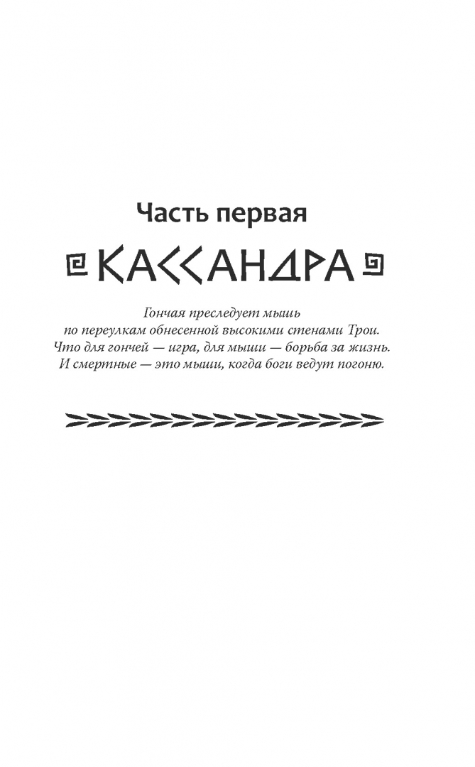 ОписаниеДар предвидения, которым наделена прекрасная троянская принцесса Кассандра, однажды становится ее проклятием. И не без участия самого Аполлона. Больше никто в целом свете не верит ее пророчествам, а некоторые даже считают ее сумасшедшей. Однако родному городу угрожает война и полное разрушение, а семье Кассандры - верная гибель. И только она, избалованная, но отважная царская дочка может предотвратить эту катастрофу. А поможет ей в этом единственная подруга, такая же юная принцесса-амазонка Рин. Благодаря им двоим у Трои появится надежда на то, что история ее разрушения превратится в историю спасения, а страшная война изменит свой ход.Дар предвидения, которым наделена прекрасная троянская принцесса Кассандра, однажды становится ее проклятием. И не без участия самого Аполлона. Больше никто в целом свете не верит ее пророчествам, а некоторые даже считают ее сумасшедшей. Однако родному городу угрожает война и полное разрушение, а семье Кассандры - верная гибель. И только она, избалованная, но отважная царская дочка может предотвратить эту катастрофу. А поможет ей в этом единственная подруга, такая же юная принцесса-амазонка Рин. Благодаря им двоим у Трои появится надежда на то, что история ее разрушения превратится в историю спасения, а страшная война изменит свой ход.