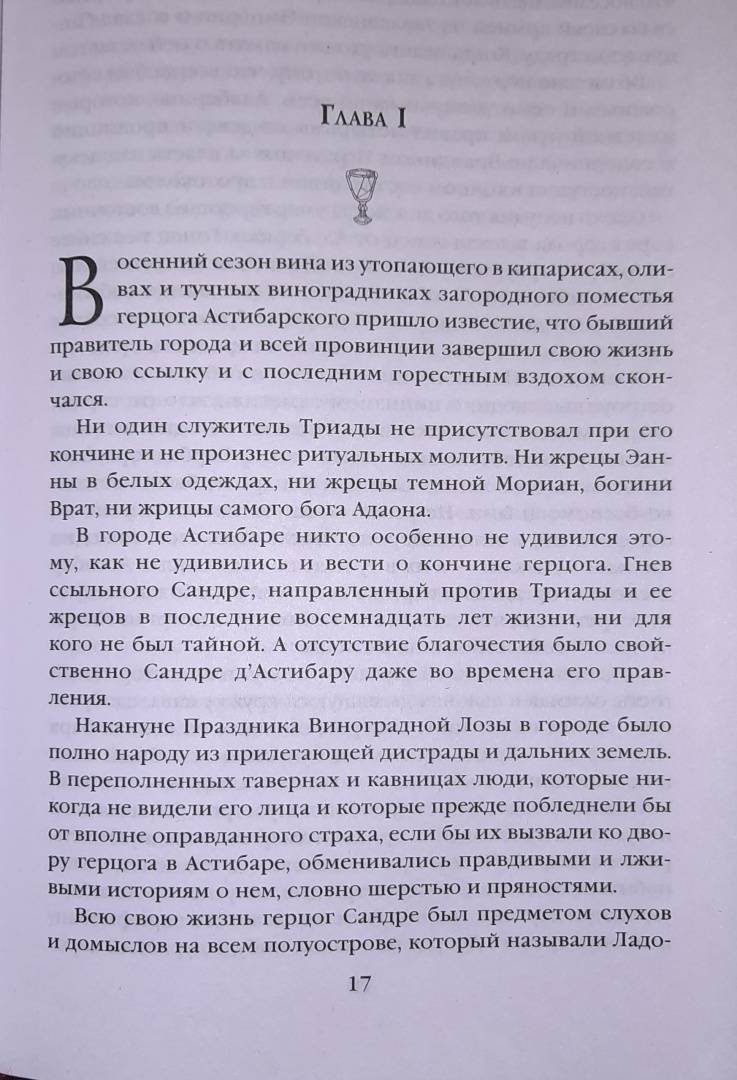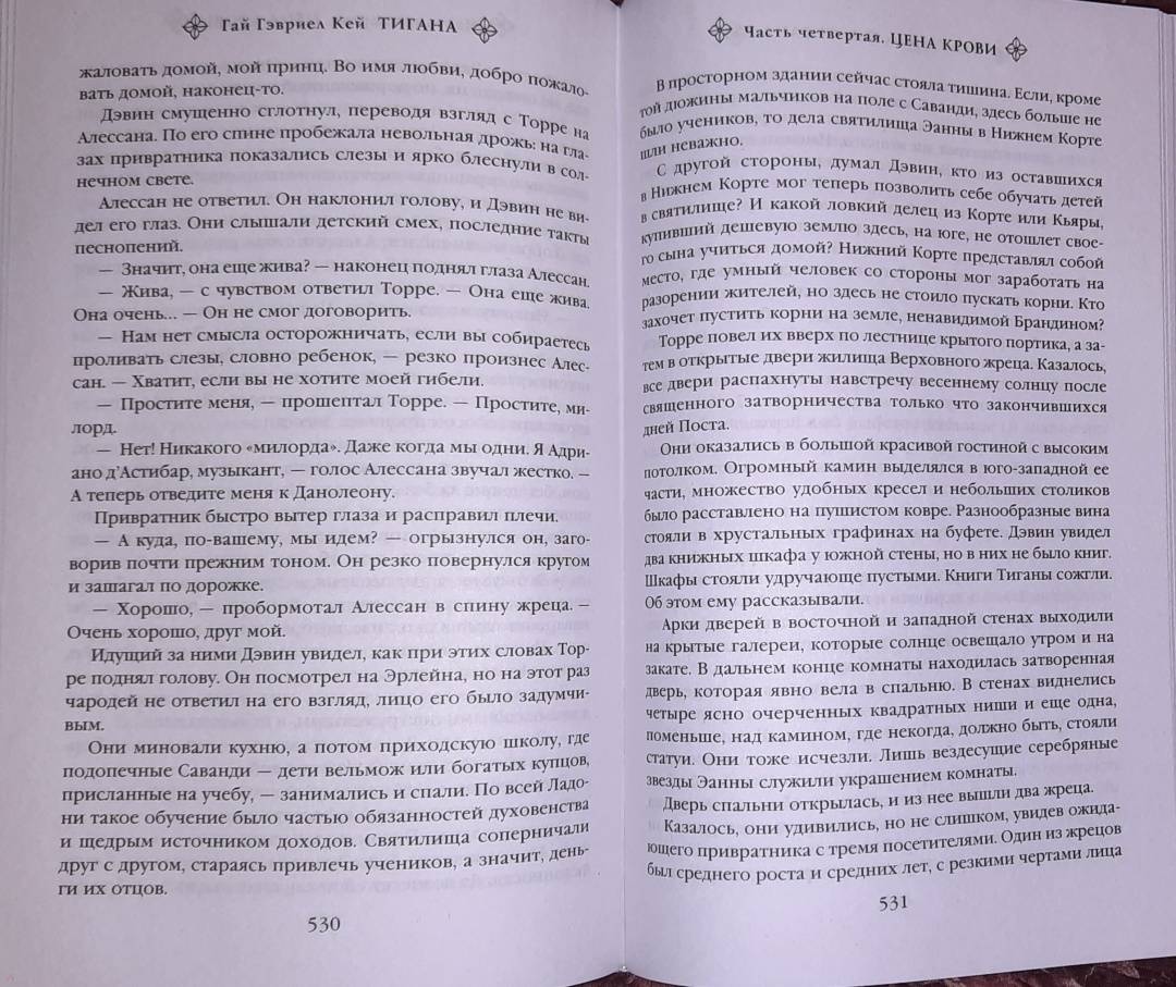 ОписаниеДвадцать лет назад два могущественных колдуна, Альберико Барбадиорский и Брандин Игратский, вторглись во главе армий на полуостров Ладонь и поделили завоёванные земли между собой.Ныне во владениях Альберико царит кровавая тирания, но Брандин милосерден к новым подданным. Ко всем, кроме жителей страны Тигана: в сражении за неё погиб любимый сын Брандина, и месть короля-колдуна оказалась страшна. Дворцы и храмы Тиганы были разрушены, скульптуры - разбиты, книги и летописи - сожжены. Могущественное заклятие заставило людей забыть само её название. Когда умрёт последний, кто был в ней рождён, даже память о Тигане исчезнет из мира. Однако остались те, кто жаждет спасти свою страну от вечного забвения. Кто готов убить Брандина, ведь его смерть разрушит чары. И то, что два правителя-колдуна готовятся развязать новую кровопролитную войну, на сей раз - между собой, как нельзя кстати вписывается в их планы…Роман признанного мастера жанра, лауреата Всемирной премии фэнтези, неоднократно номинировавшегося на "Локус", "Хьюго" и Мифопоэтическую премию.Произведения Гая Гэвриэла Кея регулярно входят в списки лучших книг года по версии журнала "Мир Фантастики".Хвалебные отзывы Брэндона Сандерсона, Энн Маккефри и других мастеров жанра.СвернутьДвадцать лет назад два могущественных колдуна, Альберико Барбадиорский и Брандин Игратский, вторглись во главе армий на полуостров Ладонь и поделили завоёванные земли между собой.Ныне во владениях Альберико царит кровавая тирания, но Брандин милосерден к новым подданным. Ко всем, кроме жителей страны Тигана: в сражении за неё погиб любимый сын Брандина, и месть короля-колдуна оказалась страшна. Дворцы и храмы Тиганы были разрушены, скульптуры - разбиты, книги и летописи - сожжены. Могущественное заклятие заставило людей забыть само её название. Когда умрёт последний, кто был в ней рождён, даже память о Тигане исчезнет из мира. Однако остались те, кто жаждет спасти свою страну от вечного забвения. Кто готов убить Брандина, ведь его смерть разрушит чары. И то, что два правителя-колдуна готовятся развязать новую кровопролитную войну, на сей раз - между собой, как нельзя кстати вписывается в их планы…Роман признанного мастера жанра, лауреата Всемирной премии фэнтези, неоднократно номинировавшегося на "Локус", "Хьюго" и Мифопоэтическую премию.Произведения Гая Гэвриэла Кея регулярно входят в списки лучших книг года по версии журнала "Мир Фантастики".Хвалебные отзывы Брэндона Сандерсона, Энн Маккефри и других мастеров жанра.СвернутьСвернуть