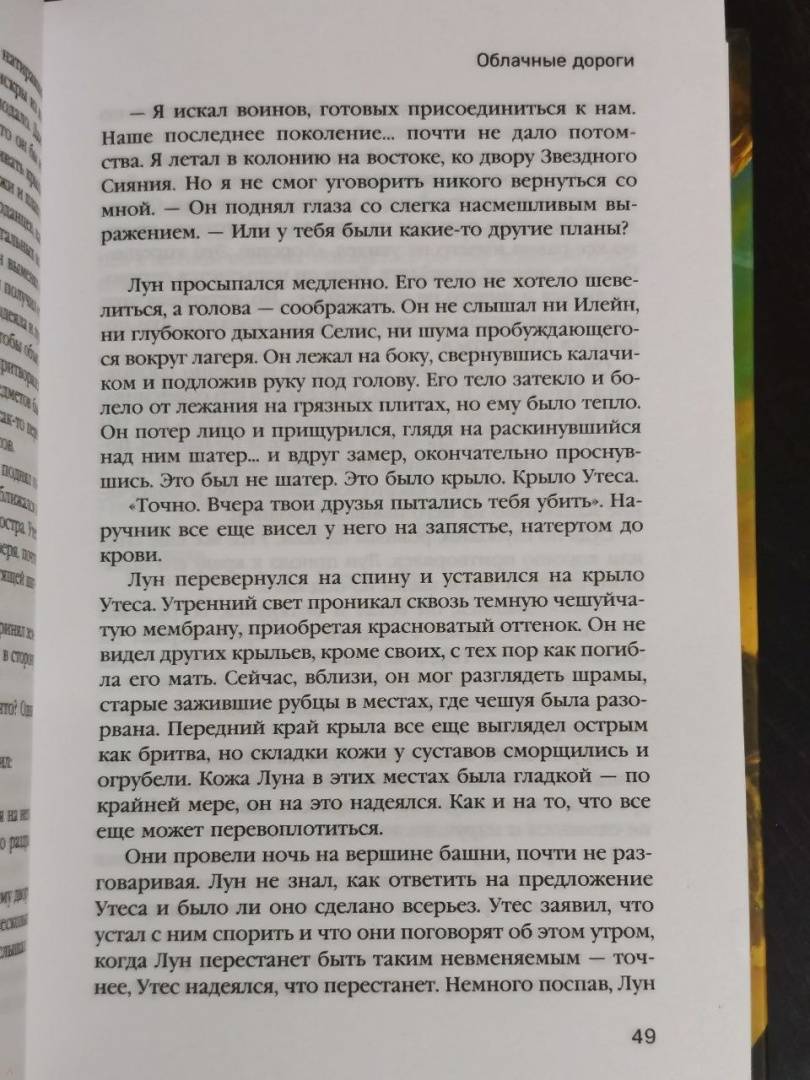 ОписаниеЛун жил, скрывая, что он оборотень, способный превращаться в крылатое существо. Сирота, едва помнящий родных, Лун пытается найти свое место среди племен, населяющих речную долину. Очередное племя изгоняет Луна, но он встречает оборотня, похожего на него. Незнакомец знает, кто Лун на самом деле, и обещает, что его примут среди себе подобных. Но он не говорит главного — что присутствие Луна изменит соотношение сил в колонии и что его народу грозит гибель. Луну нужно преодолеть выработанные на протяжении всей жизни привычки, чтобы спастись самому и спасти сородичей. «Одна из лучших новых писательниц этого жанра». — К. Д. Черри «Уэллс — ярчайшая новая звезда на небосклоне фэнтези за последние годы». — Portland Oregonian «Произведения Уэллс всегда заставляют нас желать продолжения». — Cleveland Plain Dealer «В жанре, переполненном клонами, вторичностью и раздутой на тысячи страниц солипсистской макулатурой, Уэллс стремится — причем с великолепным успехом — отличаться от других». — Kirkus Reviews «Уэллс продолжает демонстрировать впечатляющий талант к созданию детально проработанных фэнтезийных миров, наполненных запутанными интригами и крайне харизматичными персонажами». — Publishers Weekly «Уэллс никогда не перестает заинтриговывать, забавлять и восхищать читателя... Я очень рекомендую любое из произведений Марты Уэллс — и желаю, чтобы она писала их быстрее!» — Дженнифер РоберсонСвернутьЛун жил, скрывая, что он оборотень, способный превращаться в крылатое существо. Сирота, едва помнящий родных, Лун пытается найти свое место среди племен, населяющих речную долину. Очередное племя изгоняет Луна, но он встречает оборотня, похожего на него. Незнакомец знает, кто Лун на самом деле, и обещает, что его примут среди себе подобных. Но он не говорит главного — что присутствие Луна изменит соотношение сил в колонии и что его народу грозит гибель. Луну нужно преодолеть выработанные на протяжении всей жизни привычки, чтобы спастись самому и спасти сородичей. «Одна из лучших новых писательниц этого жанра». — К. Д. Черри «Уэллс — ярчайшая новая звезда на небосклоне фэнтези за последние годы». — Portland Oregonian «Произведения Уэллс всегда заставляют нас желать продолжения». — Cleveland Plain Dealer «В жанре, переполненном клонами, вторичностью и раздутой на тысячи страниц солипсистской макулатурой, Уэллс стремится — причем с великолепным успехом — отличаться от других». — Kirkus Reviews «Уэллс продолжает демонстрировать впечатляющий талант к созданию детально проработанных фэнтезийных миров, наполненных запутанными интригами и крайне харизматичными персонажами». — Publishers Weekly «Уэллс никогда не перестает заинтриговывать, забавлять и восхищать читателя... Я очень рекомендую любое из произведений Марты Уэллс — и желаю, чтобы она писала их быстрее!» — Дженнифер РоберсонСвернутьСвернуть