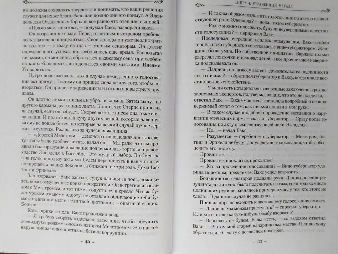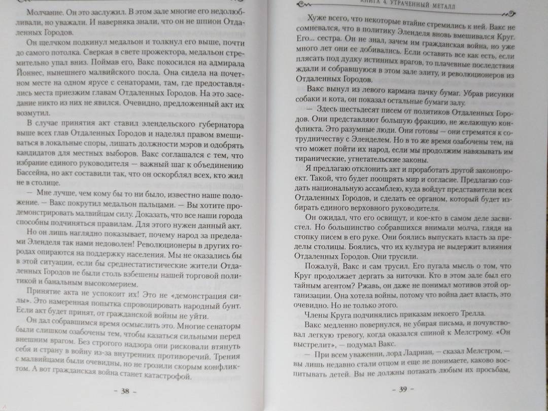 ОписаниеВаксиллиум Ладриан много лет боролся с тайной криминальной организацией под названием Круг, возглавляемой его сестрой Тельсин. В конце концов возраст взял свое, и Вакс занялся политикой и воспитанием детей. Но теперь Уэйн и Мараси обнаружили свидетельства того, что Круг возобновил свою деятельность, чрезвычайно опасную для страны. На руку преступникам играет конфликт между столицей Эленделем и Отдаленными Городами. Соседи, жители недавно открытого Южного Континента, грозят если не войной, то серьезными неприятностями, а у Гармонии, бога — покровителя Скадриаля, полно своих забот. В ходе эксперимента над редкими металлами Вакс совершает пугающее открытие, и ему приходится вернуться к ремеслу законника... Впервые на русском!Ваксиллиум Ладриан много лет боролся с тайной криминальной организацией под названием Круг, возглавляемой его сестрой Тельсин. В конце концов возраст взял свое, и Вакс занялся политикой и воспитанием детей. Но теперь Уэйн и Мараси обнаружили свидетельства того, что Круг возобновил свою деятельность, чрезвычайно опасную для страны. На руку преступникам играет конфликт между столицей Эленделем и Отдаленными Городами. Соседи, жители недавно открытого Южного Континента, грозят если не войной, то серьезными неприятностями, а у Гармонии, бога — покровителя Скадриаля, полно своих забот. В ходе эксперимента над редкими металлами Вакс совершает пугающее открытие, и ему приходится вернуться к ремеслу законника... Впервые на русском!