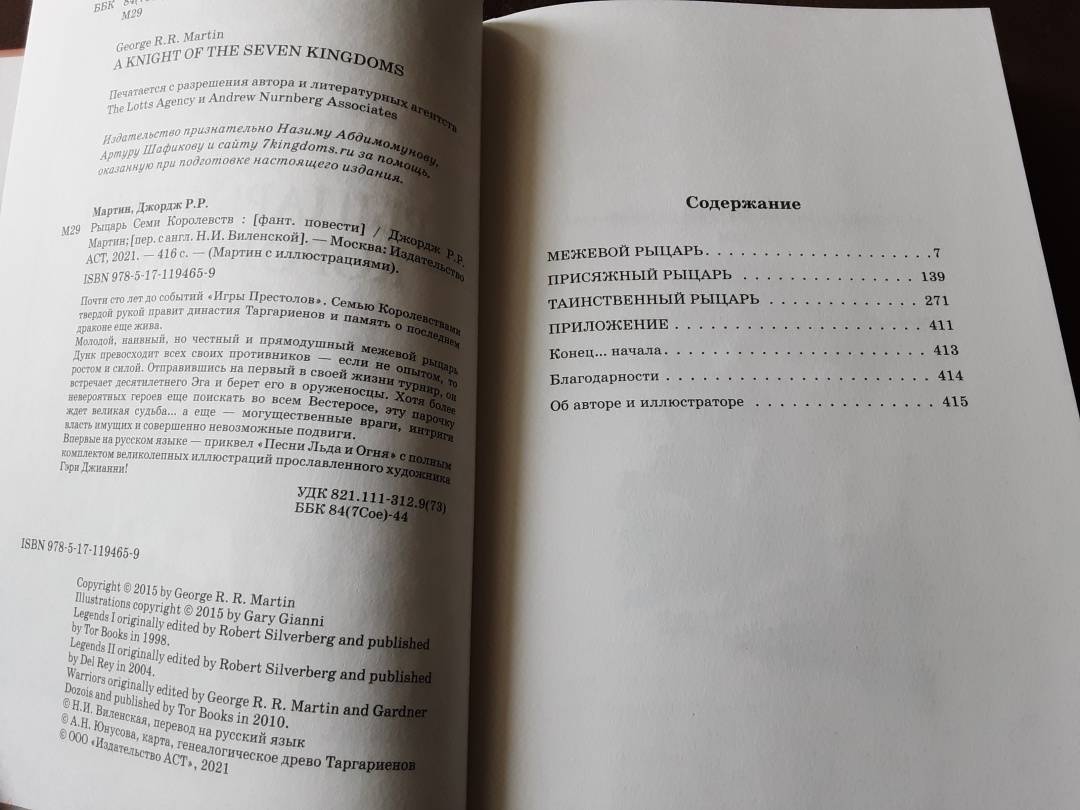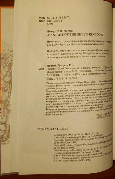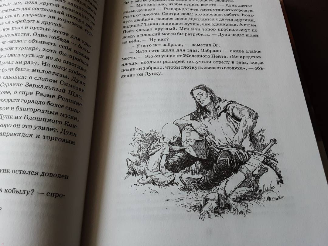 ОписаниеПочти сто лет до событий «Игры Престолов». Семью Королевствами твердой рукой правит династия Таргариенов и память о последнем драконе еще жива.Молодой, наивный, но честный и прямодушный межевой рыцарь Дунк превосходит всех своих противников — если не опытом, то ростом и силой. Отправившись на первый в своей жизни турнир, он встречает десятилетнего Эга и берет его в оруженосцы. Хотя более невероятных героев еще поискать во всем Вестеросе, эту парочку ждет великая судьба… а еще — могущественные враги, интриги власть имущих и совершенно невозможные подвиги.Впервые на русском языке — приквел «Песни Льда и Огня» с полным комплектом великолепных иллюстраций прославленного художника Гэри Джианни!Почти сто лет до событий «Игры Престолов». Семью Королевствами твердой рукой правит династия Таргариенов и память о последнем драконе еще жива.Молодой, наивный, но честный и прямодушный межевой рыцарь Дунк превосходит всех своих противников — если не опытом, то ростом и силой. Отправившись на первый в своей жизни турнир, он встречает десятилетнего Эга и берет его в оруженосцы. Хотя более невероятных героев еще поискать во всем Вестеросе, эту парочку ждет великая судьба… а еще — могущественные враги, интриги власть имущих и совершенно невозможные подвиги.Впервые на русском языке — приквел «Песни Льда и Огня» с полным комплектом великолепных иллюстраций прославленного художника Гэри Джианни!