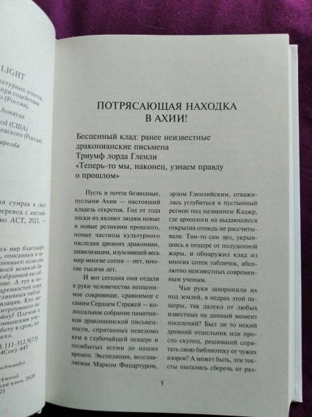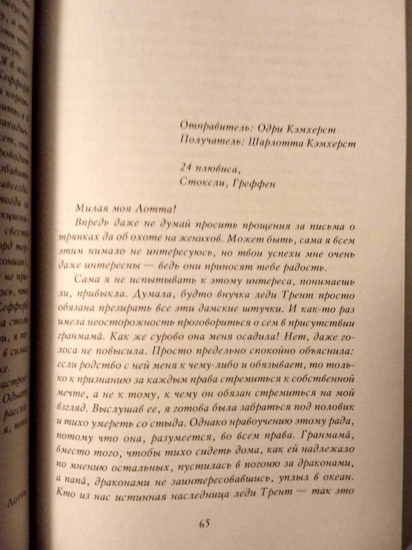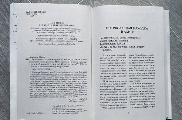 ОписаниеИзабелла Кэмхерст, леди Трент, известна на весь мир благодаря своим необычайным приключениях среди драконов, описанных в захватывающих мемуарах. Одри Кэмхерст с детства понимает: если она не хочет всю жизнь остаться всего лишь внучкой своей великой бабушки, ей тоже надлежит оставить заметный след в избранной ею области науки - языкознании. И чем скорее, тем лучше. А тут и повод - лучше не придумаешь: богатый коллекционер древностей лорд Гленли нанимает Одри для расшифровки и перевода глиняных табличек, хранящих тайны древней драконианской цивилизации. Кто же знал, что этот труд приведет девушку в самое сердце хитроумного заговора, призванного разжечь мятежи и развязать войну? Плечом к плечу с другом детства и коллегой-языковедом, драконианским ученым Кудшайном, Одри должна не только закончить работу в срок, но доказать вину заговорщиков, пока те не добились успеха.Изабелла Кэмхерст, леди Трент, известна на весь мир благодаря своим необычайным приключениях среди драконов, описанных в захватывающих мемуарах. Одри Кэмхерст с детства понимает: если она не хочет всю жизнь остаться всего лишь внучкой своей великой бабушки, ей тоже надлежит оставить заметный след в избранной ею области науки - языкознании. И чем скорее, тем лучше. А тут и повод - лучше не придумаешь: богатый коллекционер древностей лорд Гленли нанимает Одри для расшифровки и перевода глиняных табличек, хранящих тайны древней драконианской цивилизации. Кто же знал, что этот труд приведет девушку в самое сердце хитроумного заговора, призванного разжечь мятежи и развязать войну? Плечом к плечу с другом детства и коллегой-языковедом, драконианским ученым Кудшайном, Одри должна не только закончить работу в срок, но доказать вину заговорщиков, пока те не добились успеха.