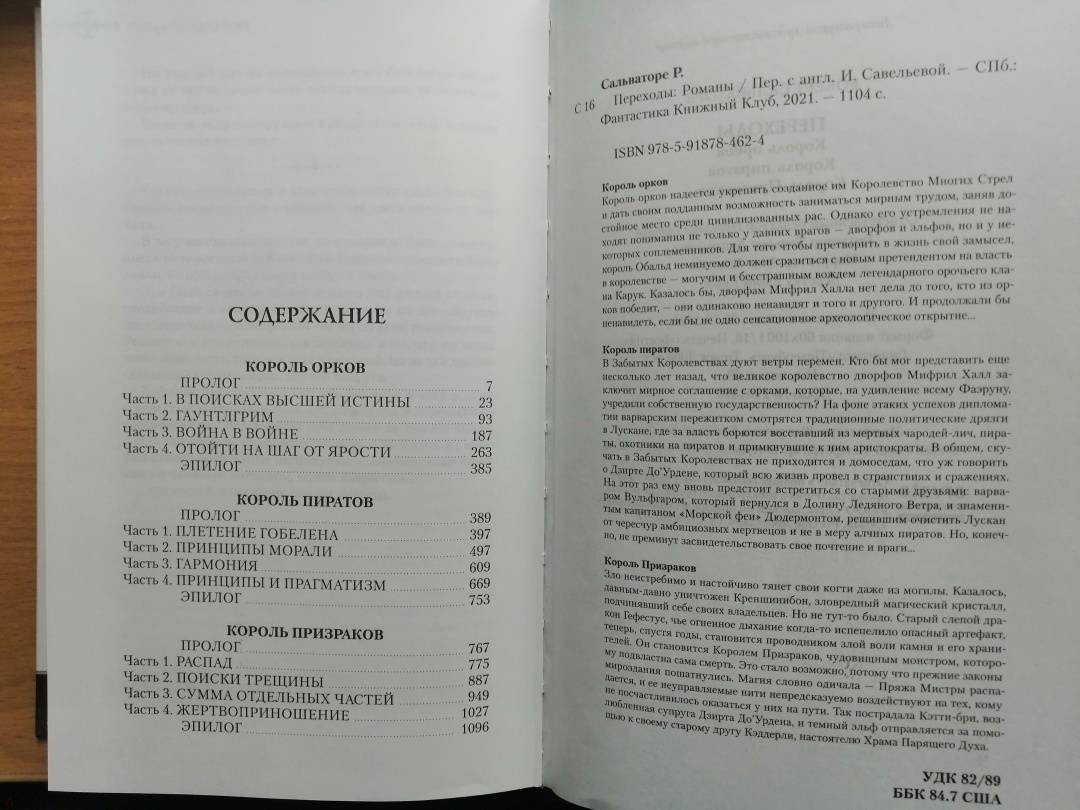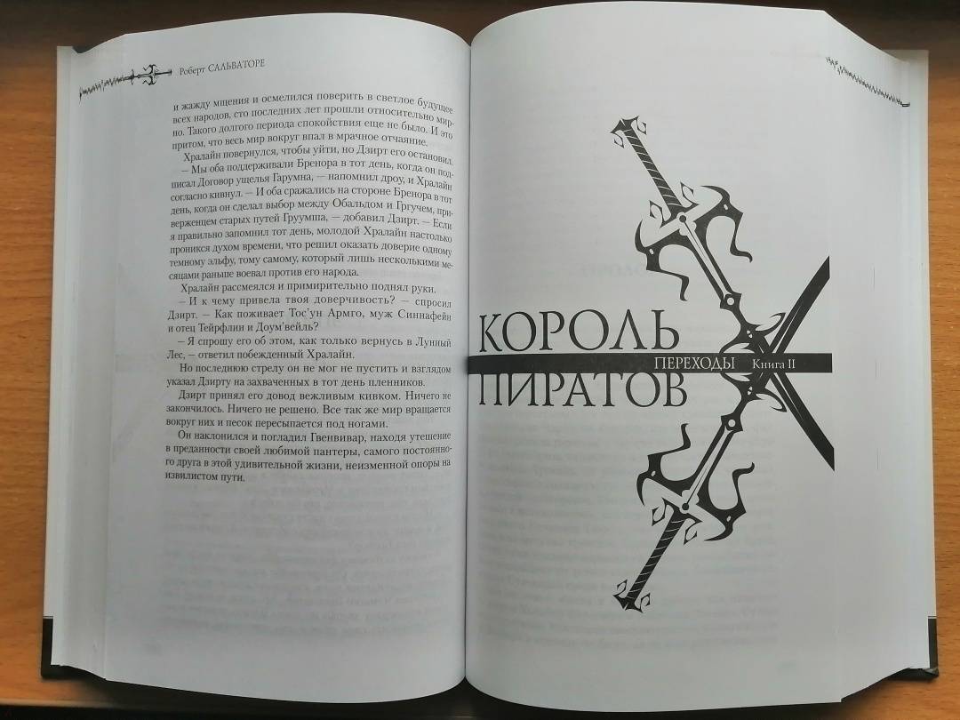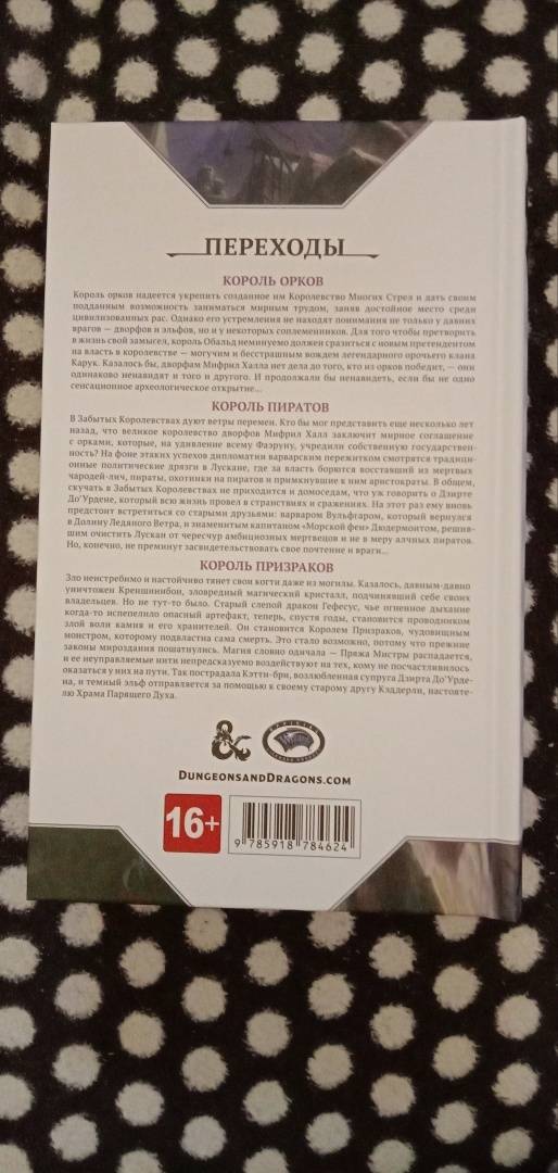 ОписаниеКороль орков Король орков надеется укрепить созданное им Королевство Многих Стрел и дать своим подданным возможность заниматься мирным трудом, заняв достойное место среди цивилизованных рас. Однако его устремления не находят понимания не только у давних врагов — дворфов и эльфов, но и у некоторых соплеменников. Для того чтобы претворить в жизнь свой замысел, король Обальд неминуемо должен сразиться с новым претендентом на власть в королевстве — могучим и бесстрашным вождем легендарного орочьего клана Карук. Казалось бы, дворфам Мифрил Халла нет дела до того, кто из орков победит, — они одинаково ненавидят и того и другого. И продолжали бы ненавидеть, если бы не одно сенсационное археологическое открытие… Король пиратов В Забытых Королевствах дуют ветры перемен. Кто бы мог представить еще несколько лет назад, что великое королевство дворфов Мифрил Халл заключит мирное соглашение с орками, которые, на удивление всему Фаэруну, учредили собственную государственность? На фоне этаких успехов дипломатии варварским пережитком смотрятся традиционные политические дрязги в Лускане, где за власть борются восставший из мертвых чародей-лич, пираты, охотники на пиратов и примкнувшие к ним аристократы. В общем, скучать в Забытых Королевствах не приходится и домоседам, что уж говорить о Дзирте До’Урдене, который всю жизнь провел в странствиях и сражениях. На этот раз ему вновь предстоит встретиться со старыми друзьями: варваром Вульфгаром, который вернулся в Долину Ледяного Ветра, и знаменитым капитаном «Морской феи» Дюдермонтом, решившим очистить Лускан от чересчур амбициозных мертвецов и не в меру алчных пиратов. Но, конечно, не преминут засвидетельствовать свое почтение и враги… Король Призраков Зло неистребимо и настойчиво тянет свои когти даже из могилы. Казалось, давным-давно уничтожен Креншинибон, зловредный магический кристалл, подчинявший себе своих владельцев. Но не тут-то было. Старый слепой дракон Гефестус, чье огненное дыхание когда-то испепелило опасный артефакт, теперь, спустя годы, становится проводником злой воли камня и его хранителей. Он становится Королем Призраков, чудовищным монстром, которому подвластна сама смерть. Это стало возможно, потому что прежние законы мироздания пошатнулись. Магия словно одичала — Пряжа Мистры распадается, и ее неуправляемые нити непредсказуемо воздействуют на тех, кому не посчастливилось оказаться у них на пути. Так пострадала Кэтти-бри, возлюбленная супруга Дзирта До’Урдена, и темный эльф отправляется за помощью к своему старому другу Кэддерли, настоятелю Храма Парящего Духа.СвернутьКороль орков Король орков надеется укрепить созданное им Королевство Многих Стрел и дать своим подданным возможность заниматься мирным трудом, заняв достойное место среди цивилизованных рас. Однако его устремления не находят понимания не только у давних врагов — дворфов и эльфов, но и у некоторых соплеменников. Для того чтобы претворить в жизнь свой замысел, король Обальд неминуемо должен сразиться с новым претендентом на власть в королевстве — могучим и бесстрашным вождем легендарного орочьего клана Карук. Казалось бы, дворфам Мифрил Халла нет дела до того, кто из орков победит, — они одинаково ненавидят и того и другого. И продолжали бы ненавидеть, если бы не одно сенсационное