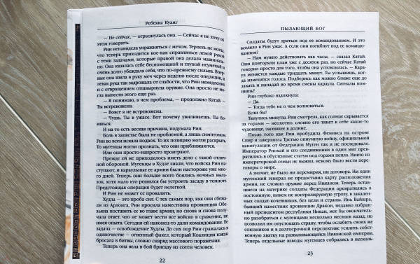 ОписаниеПосле кровавых сражений с остатками мугенской армии и союзниками гесперианцев, желающих присвоить никанские богатства, Рин снова остается ни с чем. Преданная и искалеченная, она бежит из Арлонга, чтобы собраться с силами и ударить по врагу. Но ее новые союзники в руководстве Южной коалиции лукавы и ненадежны, Рин быстро понимает, что настоящая сила в Никане – это миллионы простых людей, которые жаждут мести и почитают ее как богиню спасения. Однако по мере роста ее силы и влияния крепнет опьяняющий голос Феникса, призывающий ее сжечь весь мир. И противостоять ему все сложнее... Эффектное завершение трилогии "Опиумной войны", нашумевшего, отмеченного наградами эпического фэнтези Ребекки Куанг, которое сочетает в себе историю Китая как средних веков, так и недавнего прошлого с опасным миром богов и монстров.После кровавых сражений с остатками мугенской армии и союзниками гесперианцев, желающих присвоить никанские богатства, Рин снова остается ни с чем. Преданная и искалеченная, она бежит из Арлонга, чтобы собраться с силами и ударить по врагу. Но ее новые союзники в руководстве Южной коалиции лукавы и ненадежны, Рин быстро понимает, что настоящая сила в Никане – это миллионы простых людей, которые жаждут мести и почитают ее как богиню спасения. Однако по мере роста ее силы и влияния крепнет опьяняющий голос Феникса, призывающий ее сжечь весь мир. И противостоять ему все сложнее... Эффектное завершение трилогии "Опиумной войны", нашумевшего, отмеченного наградами эпического фэнтези Ребекки Куанг, которое сочетает в себе историю Китая как средних веков, так и недавнего прошлого с опасным миром богов и монстров.