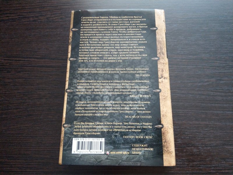 ОписаниеСредневековая Европа. Убийцы и грабители братья Гроссбарт отправляются в путешествие из германских земель на юг, спасаясь от гнева местных жителей и надеясь разбогатеть. В семье Гроссбарт уже несколько поколений промышляют разорением могил, и братья намерены прославить себя и предков, добравшись до легендарных склепов Гипта. Чтобы добраться туда, им придется пройти через опасные и неизвестные земли в компании самых разных путешественников: купцов и убийц, падших священников и жуликов всех мастей. Только мир Гроссбартов одновременно знаком нам и бесконечно далек: это мир живых святых и вполне реальных демонов, мир монстров, безумцев и чумы, мир оборотней, сирен, мантикор и чудовищ, которых сложно описать, а еще труднее назвать. Братьям предстоит узнать, что у всех легенд есть своя правда, а смерть - это далеко не самое страшное для тех, кто вступил на дорогу зла.Средневековая Европа. Убийцы и грабители братья Гроссбарт отправляются в путешествие из германских земель на юг, спасаясь от гнева местных жителей и надеясь разбогатеть. В семье Гроссбарт уже несколько поколений промышляют разорением могил, и братья намерены прославить себя и предков, добравшись до легендарных склепов Гипта. Чтобы добраться туда, им придется пройти через опасные и неизвестные земли в компании самых разных путешественников: купцов и убийц, падших священников и жуликов всех мастей. Только мир Гроссбартов одновременно знаком нам и бесконечно далек: это мир живых святых и вполне реальных демонов, мир монстров, безумцев и чумы, мир оборотней, сирен, мантикор и чудовищ, которых сложно описать, а еще труднее назвать. Братьям предстоит узнать, что у всех легенд есть своя правда, а смерть - это далеко не самое страшное для тех, кто вступил на дорогу зла.