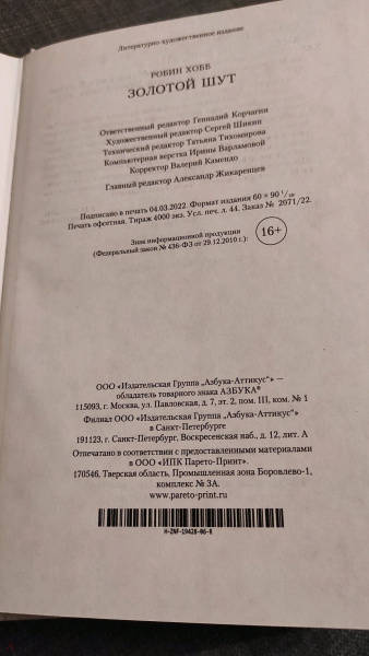Объем, стр. 704 ISBN 978-5-389-11399-2 Автор Хобб Робин, Гольдич В. А., Оганесова Ирина Альфредовна Переводчик Гольдич В. А., Оганесова Ирина Альфредовна Серия Звезды новой фэнтези Язык Русский Минимальный возраст 16+ Год издания книги 2022 Тип обложки Твердый переплет Иллюстрации Без иллюстраций Вес, г 850г Размеры 220х150х30 мм - Отзывы
