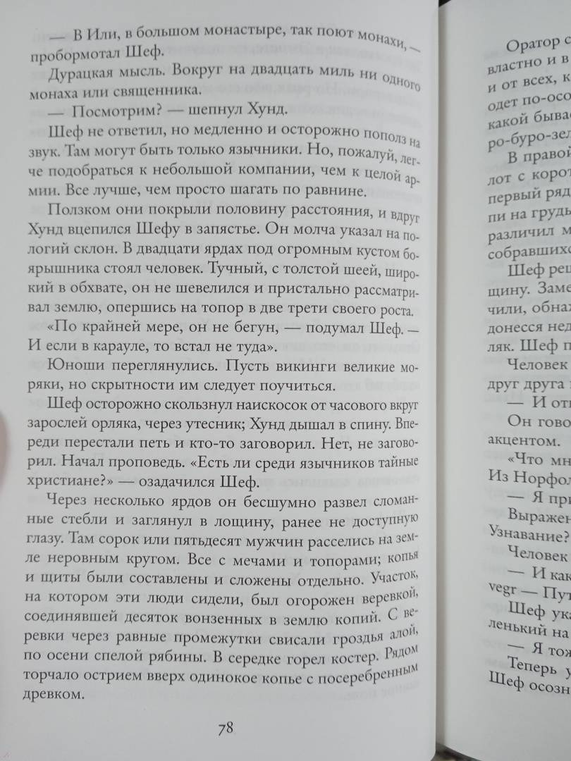 ОписаниеГод 865-й. Британскими островами правят враждующие короли, а королями правит Церковь, беспощадно расправляясь со всеми, кто оспаривает ее власть. Только грозные викинги не страшатся христианских иерархов и крепко держатся за свою веру. Молодой кузнец Шеф, рожденный знатной английской пленницей от вождя разбойников-северян, волею судьбы — а может быть, волею языческих богов, — становится врагом собственного народа. Являясь в видениях, таинственный наставник помогает ему изобретать новое оружие и тактические приемы. Шеф собирает по крупицам собственное королевство и начинает тотальную войну — войну Молота и Креста.Год 865-й. Британскими островами правят враждующие короли, а королями правит Церковь, беспощадно расправляясь со всеми, кто оспаривает ее власть. Только грозные викинги не страшатся христианских иерархов и крепко держатся за свою веру. Молодой кузнец Шеф, рожденный знатной английской пленницей от вождя разбойников-северян, волею судьбы — а может быть, волею языческих богов, — становится врагом собственного народа. Являясь в видениях, таинственный наставник помогает ему изобретать новое оружие и тактические приемы. Шеф собирает по крупицам собственное королевство и начинает тотальную войну — войну Молота и Креста.