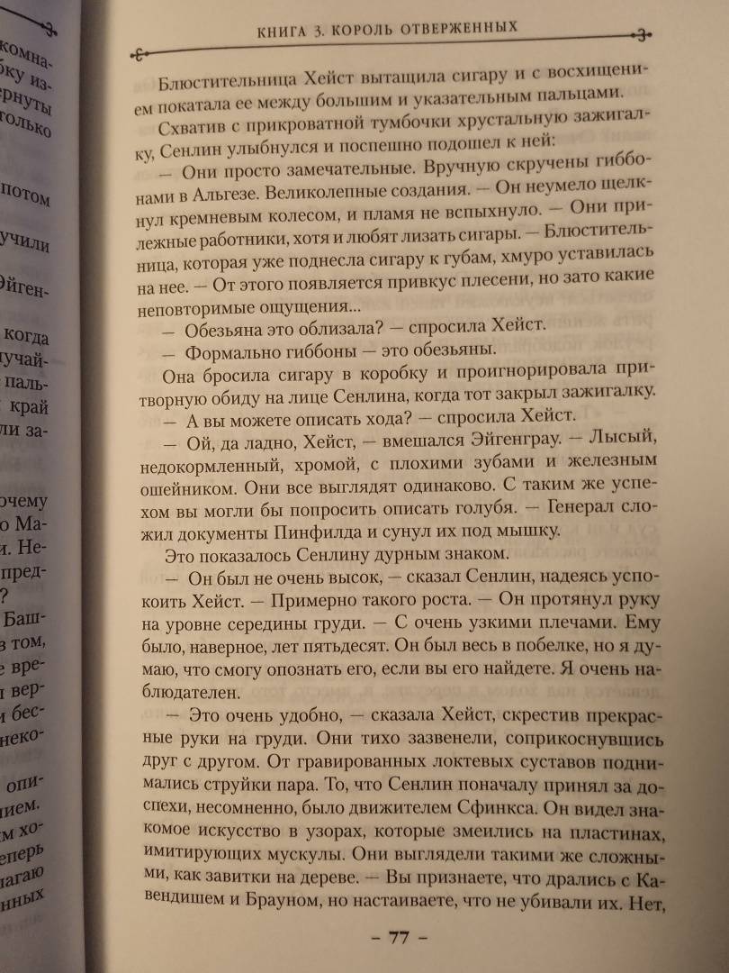 ОписаниеВ поисках пропавшей жены Томас Сенлин успел побыть актером, авантюристом, капитаном порта и пиратом, а теперь он шпион самого Сфинкса. Сенлин отправляется в удел Пелфия с заданием выяснить, кто же в этой обители гуляк и модников ведет деятельность, тщательно сокрытую от механических глаз и ушей хозяина Вавилонской башни. Но ход расследования нарушается из-за случайного убийства и неожиданного воссоединения. Жизнь и свобода Сенлина снова в опасности, его старые и новые друзья - в самой гуще стремительных и грозных событий, а над уделом, башней и всем миром сгущаются тучи.Впервые на русском!В поисках пропавшей жены Томас Сенлин успел побыть актером, авантюристом, капитаном порта и пиратом, а теперь он шпион самого Сфинкса. Сенлин отправляется в удел Пелфия с заданием выяснить, кто же в этой обители гуляк и модников ведет деятельность, тщательно сокрытую от механических глаз и ушей хозяина Вавилонской башни. Но ход расследования нарушается из-за случайного убийства и неожиданного воссоединения. Жизнь и свобода Сенлина снова в опасности, его старые и новые друзья - в самой гуще стремительных и грозных событий, а над уделом, башней и всем миром сгущаются тучи.Впервые на русском!