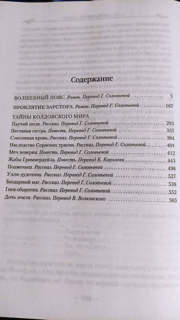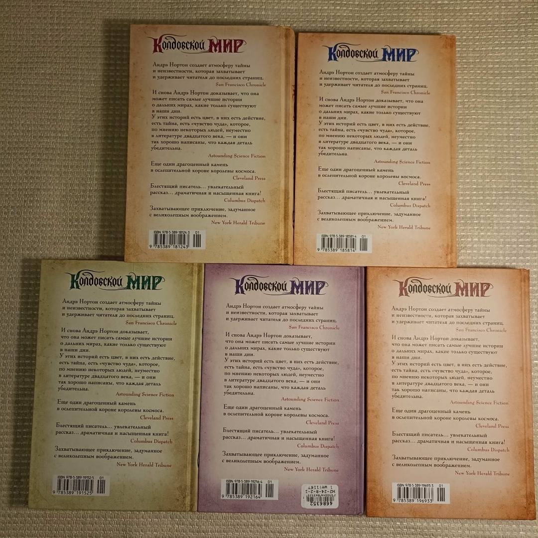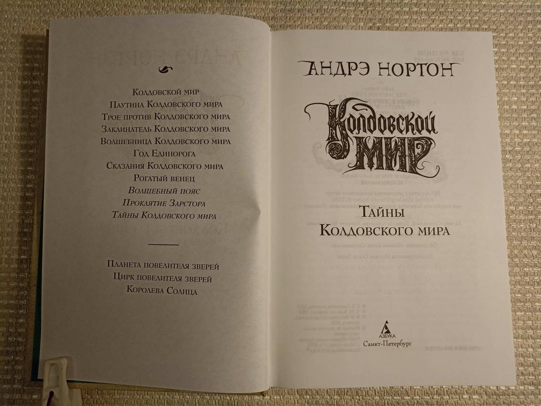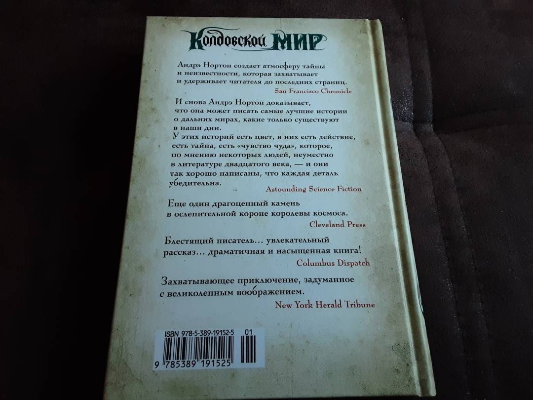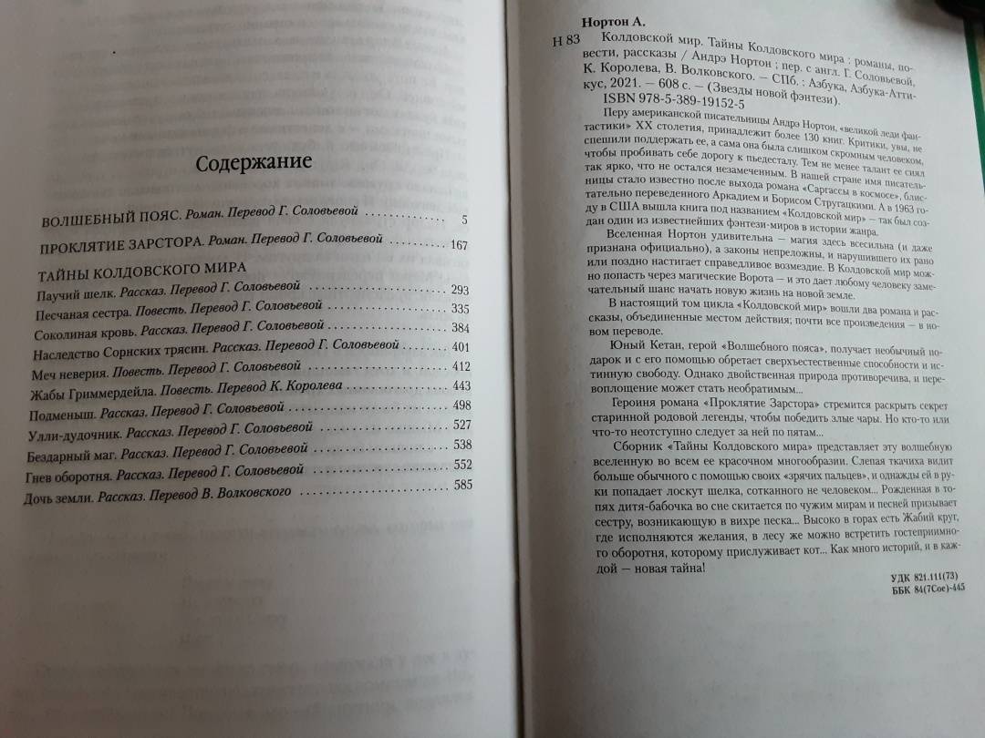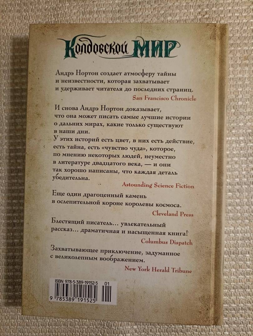 ОписаниеПеру американской писательницы Андрэ Нортон, «великой леди фантастики» XX столетия, принадлежит более 130 книг. Критики, увы, не спешили поддержать ее, а сама она была слишком скромным человеком, чтобы пробивать себе дорогу к пьедесталу. Тем не менее талант ее сиял так ярко, что не остался незамеченным. В нашей стране имя писательницы стало известно после выхода романа «Саргассы в космосе», блистательно переведенного Аркадием и Борисом Стругацкими. А в 1963 году в США вышла книга под названием «Колдовской мир» — так был создан один из известнейших фэнтези-миров в истории жанра.Вселенная Нортон удивительна — магия здесь всесильна (и даже признана официально), а законы непреложны, и нарушившего их рано или поздно настигает справедливое возмездие. В Колдовской мир можно попасть через магические Ворота — и это дает любому человеку замечательный шанс начать новую жизнь на новой земле.В настоящий том цикла «Колдовской мир» вошли два романа и рассказы, объединенные местом действия; почти все произведения — в новом переводе.Юный Кетан, герой «Волшебного пояса», получает необычный подарок и с его помощью обретает сверхъестественные способности и истинную свободу. Однако двойственная природа противоречива, и перевоплощение может стать необратимым...Героиня романа «Проклятие Зарстора» стремится раскрыть секрет старинной родовой легенды, чтобы победить злые чары. Но кто-то или что-то неотступно следует за ней по пятам...Сборник «Тайны Колдовского мира» представляет эту волшебную вселенную во всем ее красочном многообразии. Слепая ткачиха видит больше обычного с помощью своих «зрячих пальцев», и однажды ей в руки попадает лоскут шелка, сотканного не человеком... Рожденная в топях дитя-бабочка во сне скитается по чужим мирам и песней призывает сестру, возникающую в вихре песка... Высоко в горах есть Жабий круг, где исполняются желания, в лесу же можно встретить гостеприимного оборотня, которому прислуживает кот... Как много историй, и в каждой — новая тайна!СвернутьПеру американской писательницы Андрэ Нортон, «великой леди фантастики» XX столетия, принадлежит более 130 книг. Критики, увы, не спешили поддержать ее, а сама она была слишком скромным человеком, чтобы пробивать себе дорогу к пьедесталу. Тем не менее талант ее сиял так ярко, что не остался незамеченным. В нашей стране имя писательницы стало известно после выхода романа «Саргассы в космосе», блистательно переведенного Аркадием и Борисом Стругацкими. А в 1963 году в США вышла книга под названием «Колдовской мир» — так был создан один из известнейших фэнтези-миров в истории жанра.Вселенная Нортон удивительна — магия здесь всесильна (и даже признана официально), а законы непреложны, и нарушившего их рано или поздно настигает справедливое возмездие. В Колдовской мир можно попасть через магические Ворота — и это дает любому человеку замечательный шанс начать новую жизнь на новой земле.В настоящий том цикла «Колдовской мир» вошли два романа и рассказы, объединенные местом действия; почти все произведения — в новом переводе.Юный Кетан, герой «Волшебного пояса», получает необычный подарок и с его помощью обретает сверхъестественные способности и истинную свободу. Однако двойственная природа противоречива, и перевоплощение может стать необратимым...Героиня романа «Прокля