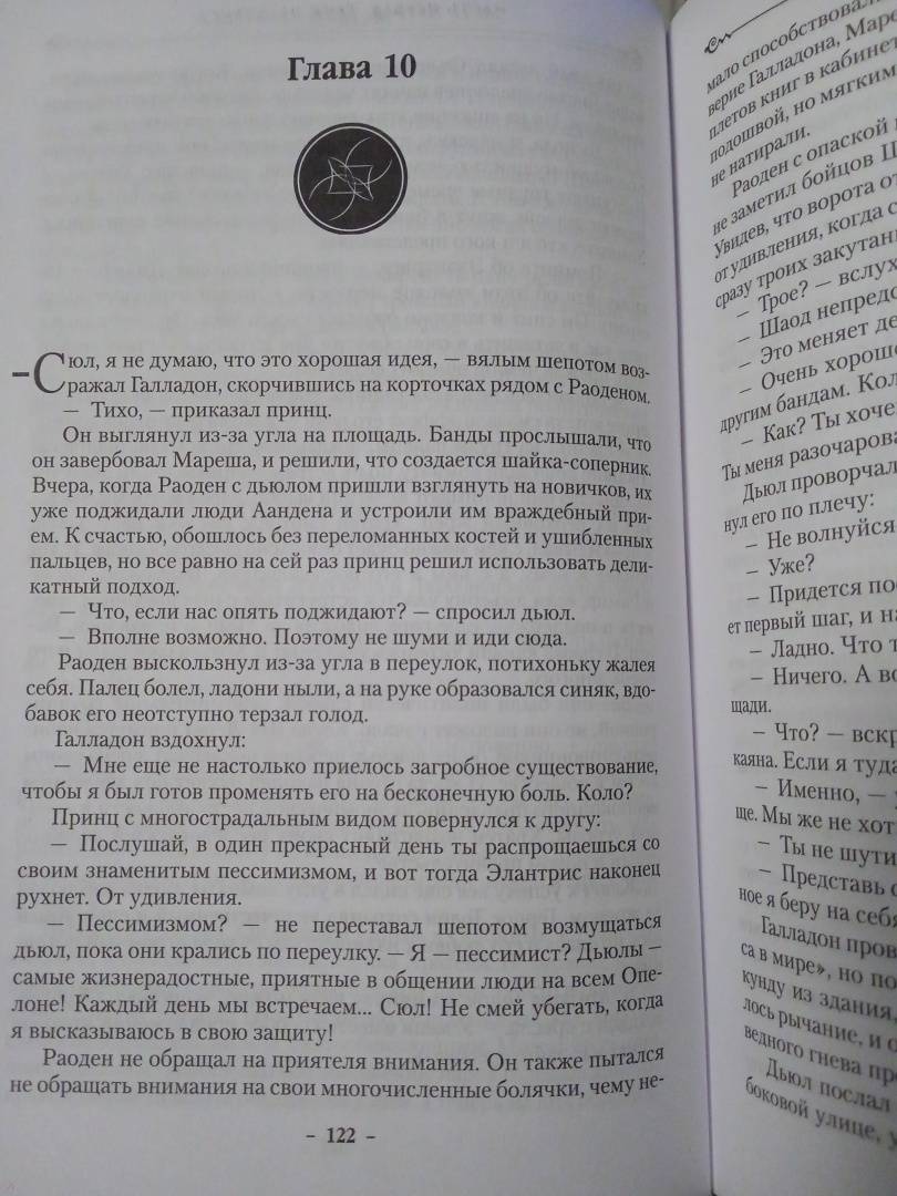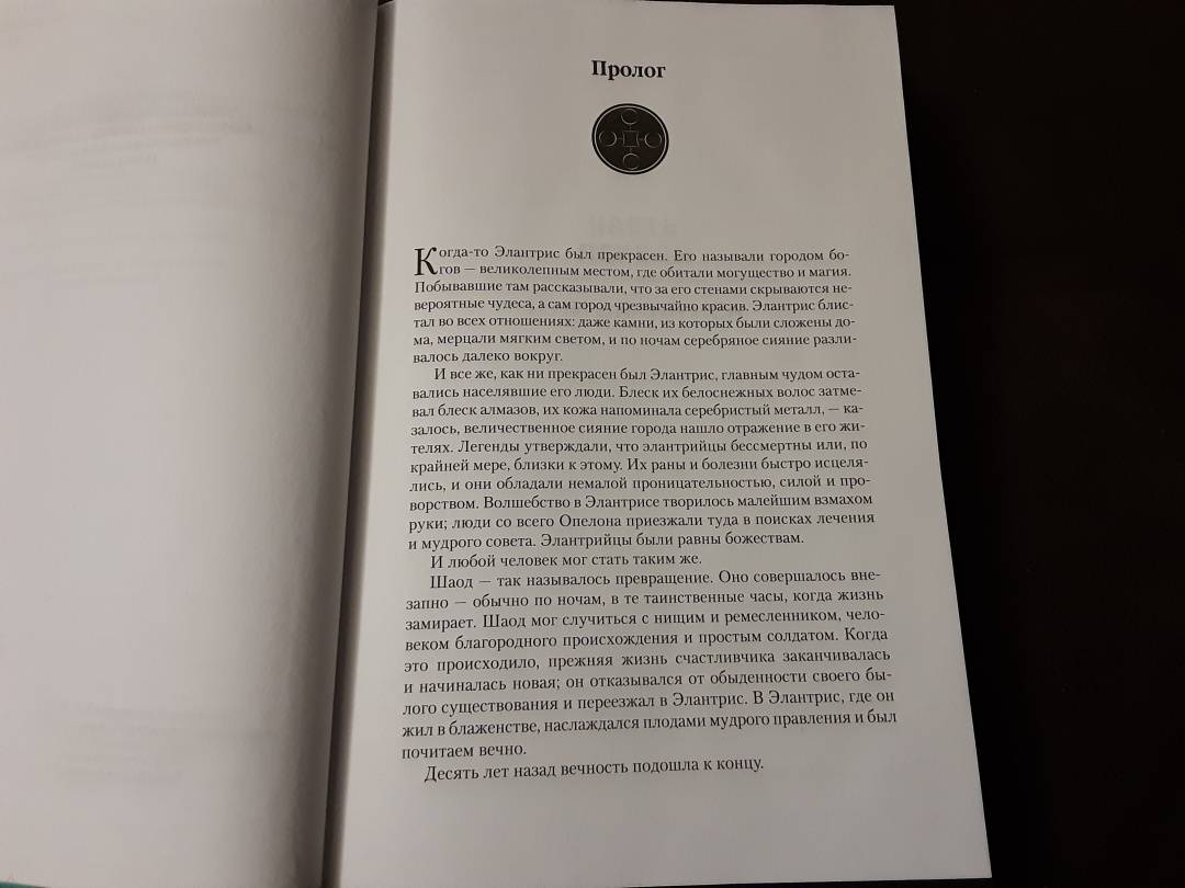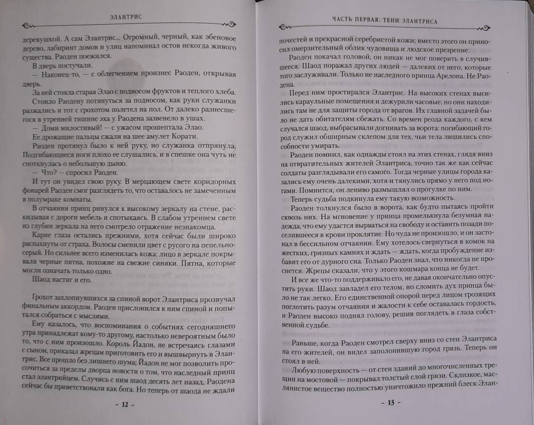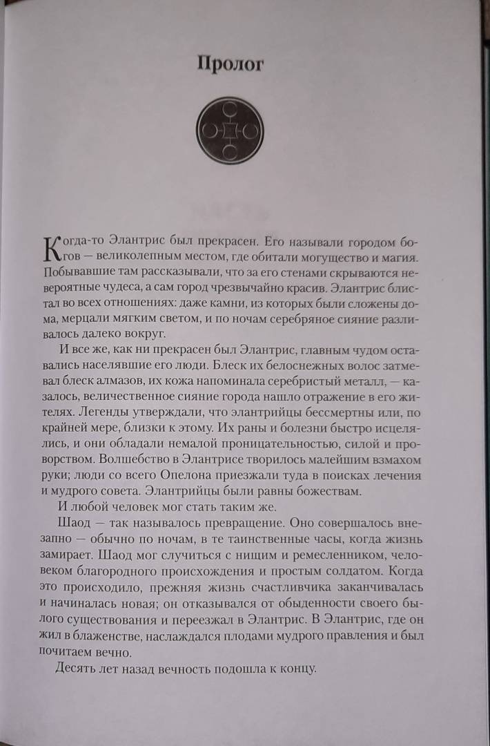 ОписаниеВеличественный Элантрис, город богов, средоточие магии, мудрости и несказанной красоты, был подобен серебряному костру, горящему в вечности. Стать элантрийцем и уподобиться богам мог любой человек, которого касался шаод - таинственное преображение, наделяющее избранных волшебной силой.Вечность закончилась десять лет назад. Прекрасный город пал, а благословение шаода обернулось проклятием. Новая столица Арелона, маленький Каи, живет в тени черных стен Элантриса, стараясь не замечать города, ставшего резервацией для тех несчастных, кого по-прежнему забирает шаод. Но очередной жертвой оказывается Раоден, наследный принц Арелона…Величественный Элантрис, город богов, средоточие магии, мудрости и несказанной красоты, был подобен серебряному костру, горящему в вечности. Стать элантрийцем и уподобиться богам мог любой человек, которого касался шаод - таинственное преображение, наделяющее избранных волшебной силой.Вечность закончилась десять лет назад. Прекрасный город пал, а благословение шаода обернулось проклятием. Новая столица Арелона, маленький Каи, живет в тени черных стен Элантриса, стараясь не замечать города, ставшего резервацией для тех несчастных, кого по-прежнему забирает шаод. Но очередной жертвой оказывается Раоден, наследный принц Арелона…