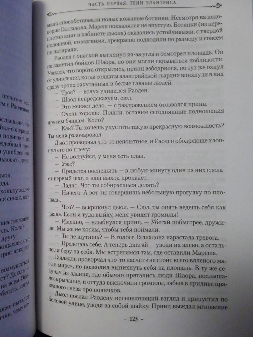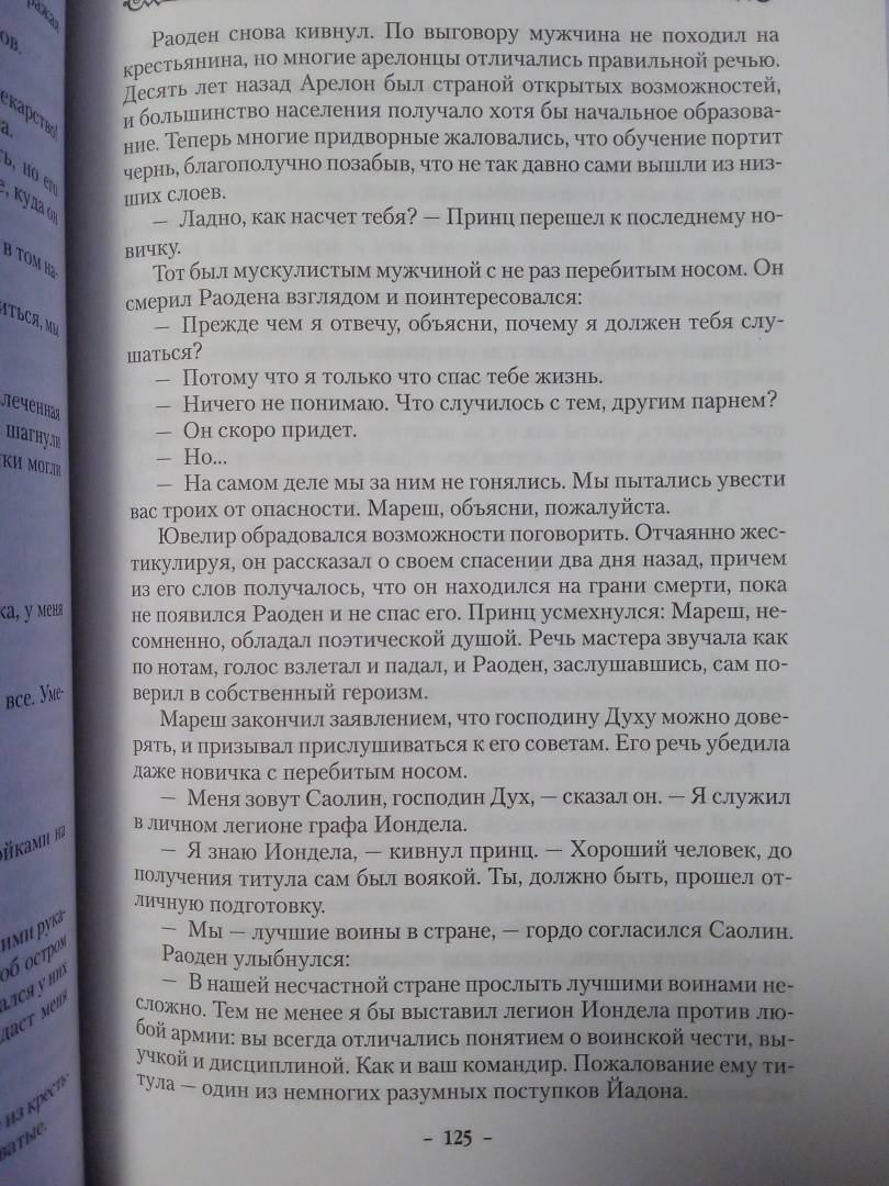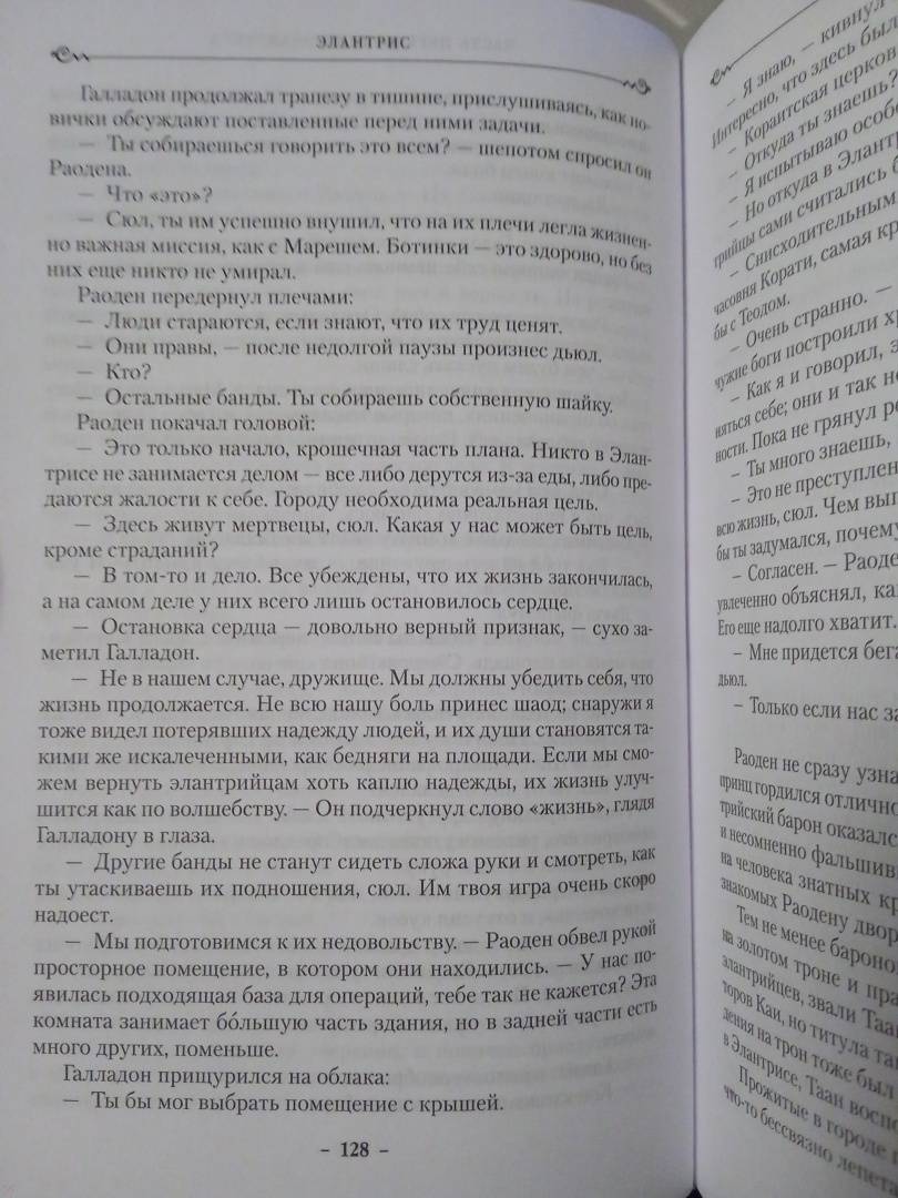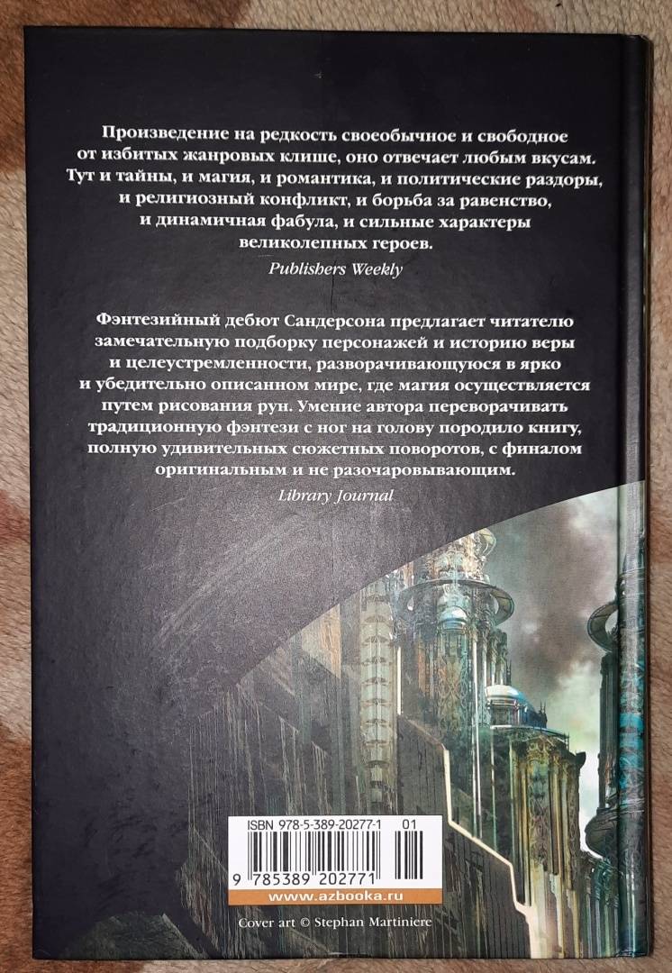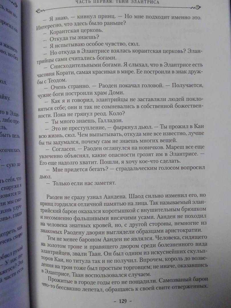 ОписаниеВеличественный Элантрис, город богов, средоточие магии, мудрости и несказанной красоты, был подобен серебряному костру, горящему в вечности. Стать элантрийцем и уподобиться богам мог любой человек, которого касался шаод - таинственное преображение, наделяющее избранных волшебной силой.Вечность закончилась десять лет назад. Прекрасный город пал, а благословение шаода обернулось проклятием. Новая столица Арелона, маленький Каи, живет в тени черных стен Элантриса, стараясь не замечать города, ставшего резервацией для тех несчастных, кого по-прежнему забирает шаод. Но очередной жертвой оказывается Раоден, наследный принц Арелона…Величественный Элантрис, город богов, средоточие магии, мудрости и несказанной красоты, был подобен серебряному костру, горящему в вечности. Стать элантрийцем и уподобиться богам мог любой человек, которого касался шаод - таинственное преображение, наделяющее избранных волшебной силой.Вечность закончилась десять лет назад. Прекрасный город пал, а благословение шаода обернулось проклятием. Новая столица Арелона, маленький Каи, живет в тени черных стен Элантриса, стараясь не замечать города, ставшего резервацией для тех несчастных, кого по-прежнему забирает шаод. Но очередной жертвой оказывается Раоден, наследный принц Арелона…