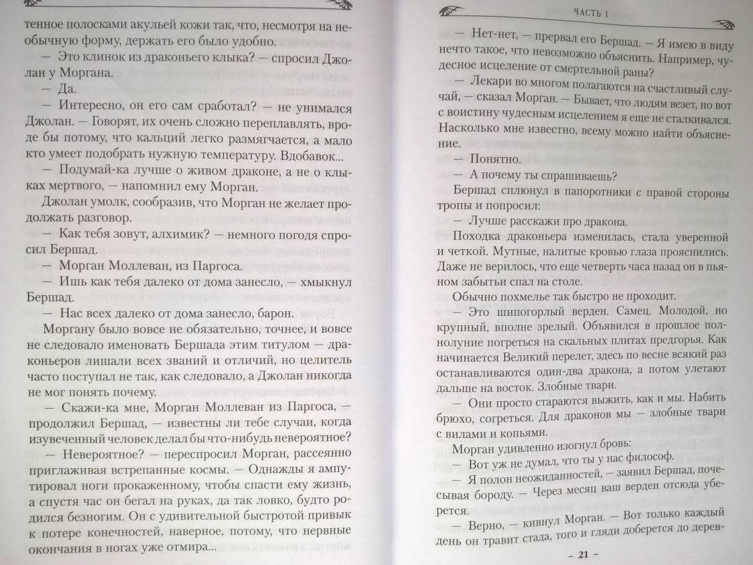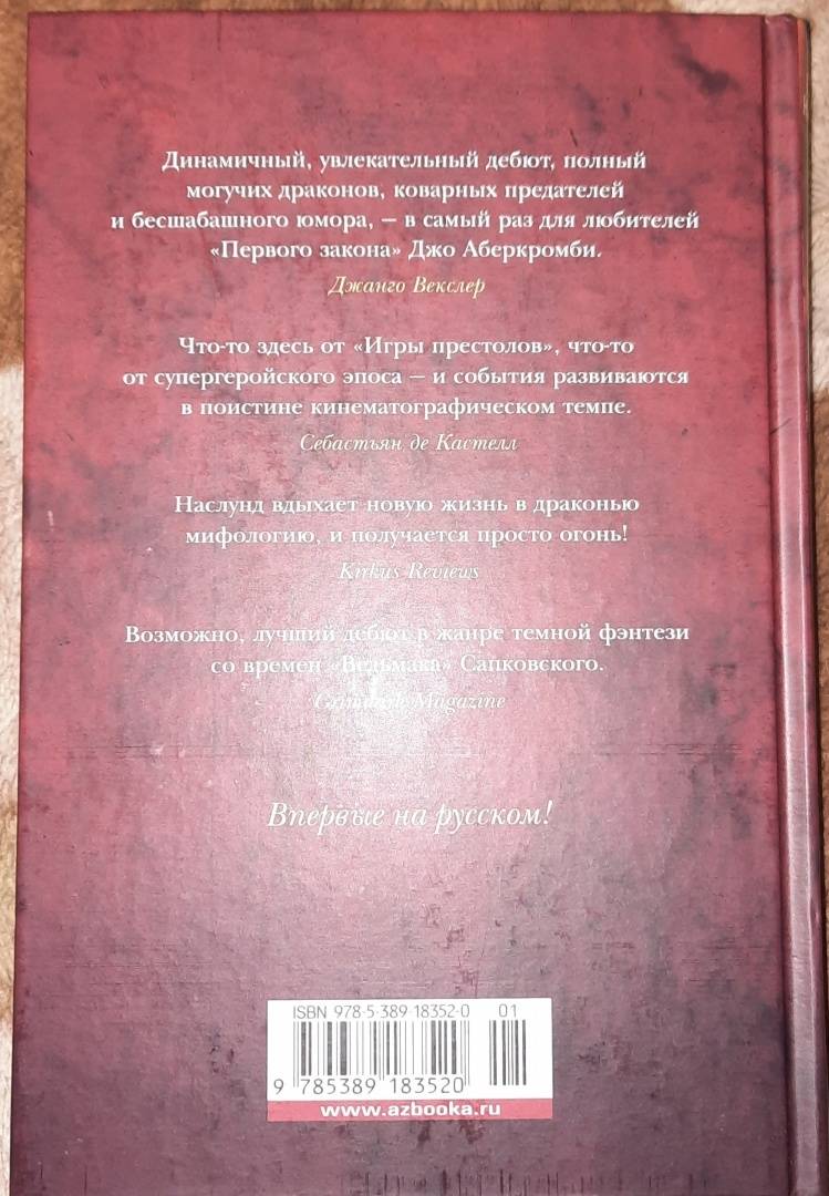 ОписаниеБершад Безупречный - лучший драконьер на всей Терре. А также - "сын предателя Леона Бершада. Бывший наследник Заповедного Дола и провинции Дайновая Пуща. Бывший жених принцессы Эшлин Мальграв. Бывший полководец Воинства Ягуаров. Нрава буйного, легко ярится, в гневе жаждет крови. Изгнан за кровавое побоище в Гленлокском ущелье". Осужденный королевским правосудием биться с огнедышащими рептилиями, он до сих пор не потерпел ни одного поражения, и на его счету невероятные шестьдесят пять побед. Но однажды король Альмиры Гертцог Мальграв I повелевает Бершаду вернуться в столицу Незатопимая Гавань, куда осужденным на драконьерство доступ запрещен под страхом немедленной смерти. У Мальграва есть для Бершада особое поручение, и у принцессы Эшлин, посвятившей себя изучению драконов, - тоже… Впервые на русском - "возможно, лучший дебют в жанре темной фэнтези со времен "Ведьмака" Сапковского" (Grimdark Magazine).Бершад Безупречный - лучший драконьер на всей Терре. А также - "сын предателя Леона Бершада. Бывший наследник Заповедного Дола и провинции Дайновая Пуща. Бывший жених принцессы Эшлин Мальграв. Бывший полководец Воинства Ягуаров. Нрава буйного, легко ярится, в гневе жаждет крови. Изгнан за кровавое побоище в Гленлокском ущелье". Осужденный королевским правосудием биться с огнедышащими рептилиями, он до сих пор не потерпел ни одного поражения, и на его счету невероятные шестьдесят пять побед. Но однажды король Альмиры Гертцог Мальграв I повелевает Бершаду вернуться в столицу Незатопимая Гавань, куда осужденным на драконьерство доступ запрещен под страхом немедленной смерти. У Мальграва есть для Бершада особое поручение, и у принцессы Эшлин, посвятившей себя изучению драконов, - тоже… Впервые на русском - "возможно, лучший дебют в жанре темной фэнтези со времен "Ведьмака" Сапковского" (Grimdark Magazine).