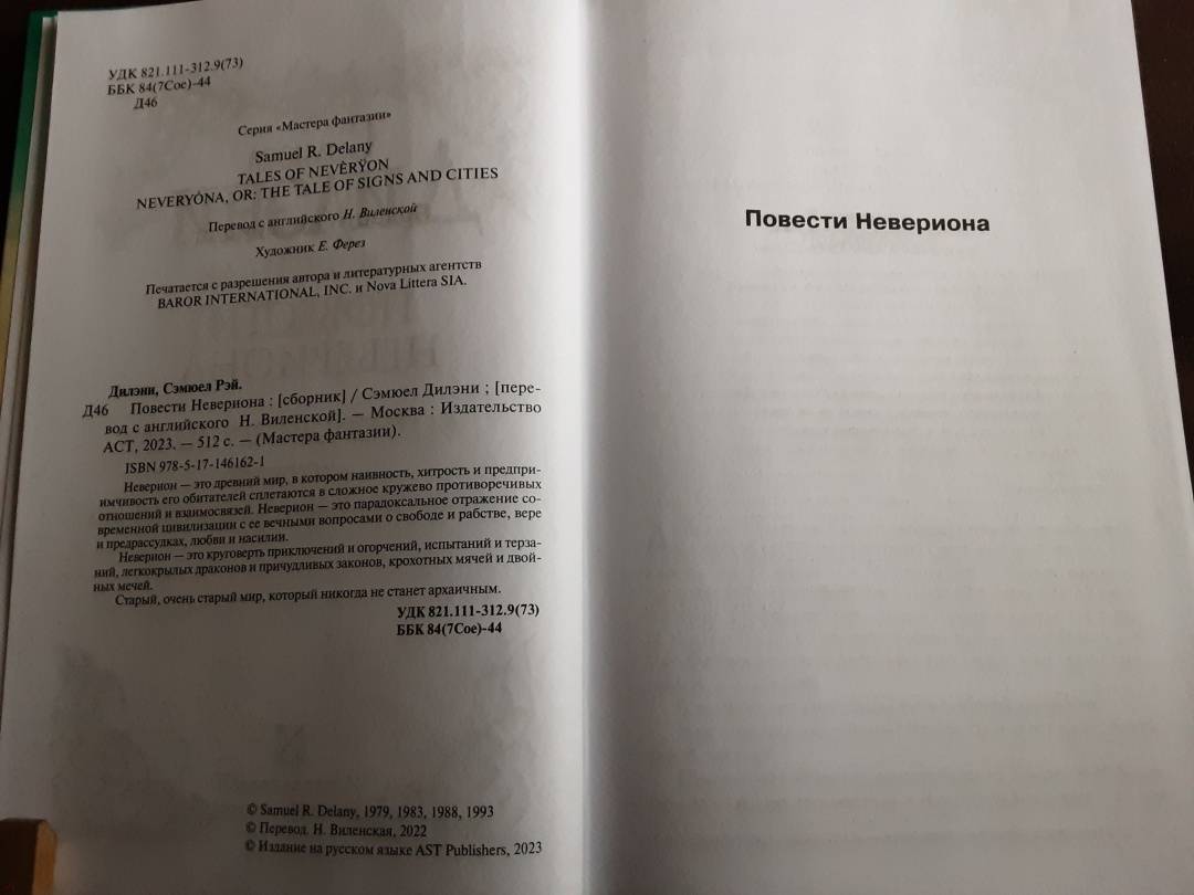 Объем, стр. 512 ISBN 978-5-17-146162-1 Автор Дилэни Сэмюел, Виленская Наталья Исааковна Переводчик Виленская Наталья Исааковна Серия Мастера фантазии Язык Русский Минимальный возраст 16+ Год издания книги 2023 Тип обложки Твердый переплет Иллюстрации Без иллюстраций Вес, г 587г Размеры 217х143х26 мм - Отзывы