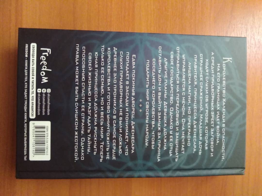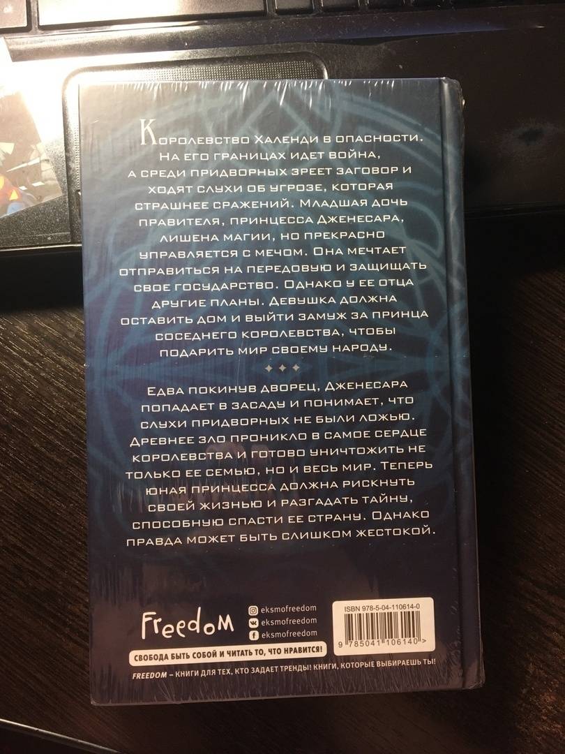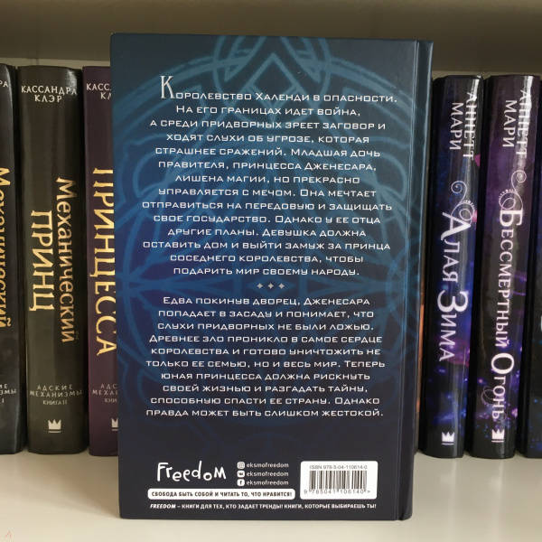 ОписаниеКоролевство Халенди в опасности. На его границах идет война, а среди придворных зреет заговор и ходят слухи об угрозе, которая страшнее сражений. Младшая дочь правителя, принцесса Дженесара, лишена магии, но прекрасно управляется с мечом. Она мечтает отправиться на передовую и защищать свое государство. Однако у ее отца другие планы. Девушка должна оставить дом и выйти замуж за принца соседнего королевства, чтобы подарить мир своему народу. Едва покинув дворец, Дженесара попадает в засаду и понимает, что слухи придворных не были ложью. Древнее зло проникло в самое сердце королевства и готово уничтожить не только ее семью, но и весь мир. Теперь юная принцесса должна рискнуть своей жизнью и разгадать тайну, способную спасти ее страну. Однако правда может быть слишком жестокой.Королевство Халенди в опасности. На его границах идет война, а среди придворных зреет заговор и ходят слухи об угрозе, которая страшнее сражений. Младшая дочь правителя, принцесса Дженесара, лишена магии, но прекрасно управляется с мечом. Она мечтает отправиться на передовую и защищать свое государство. Однако у ее отца другие планы. Девушка должна оставить дом и выйти замуж за принца соседнего королевства, чтобы подарить мир своему народу. Едва покинув дворец, Дженесара попадает в засаду и понимает, что слухи придворных не были ложью. Древнее зло проникло в самое сердце королевства и готово уничтожить не только ее семью, но и весь мир. Теперь юная принцесса должна рискнуть своей жизнью и разгадать тайну, способную спасти ее страну. Однако правда может быть слишком жестокой.