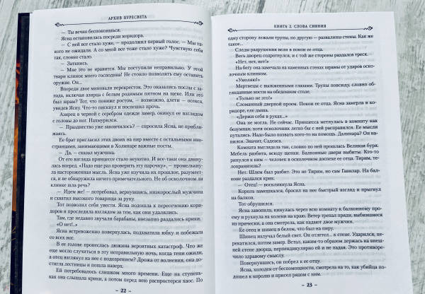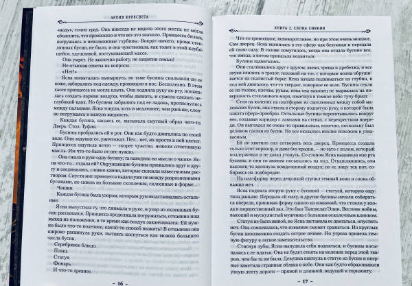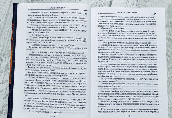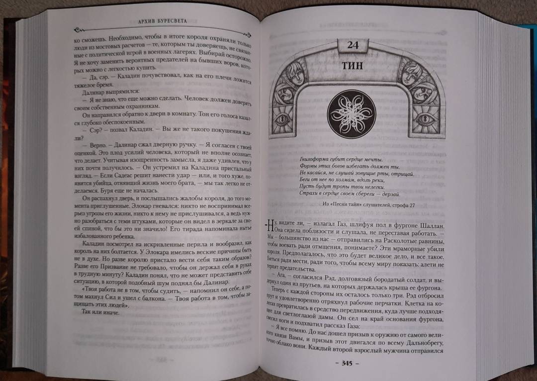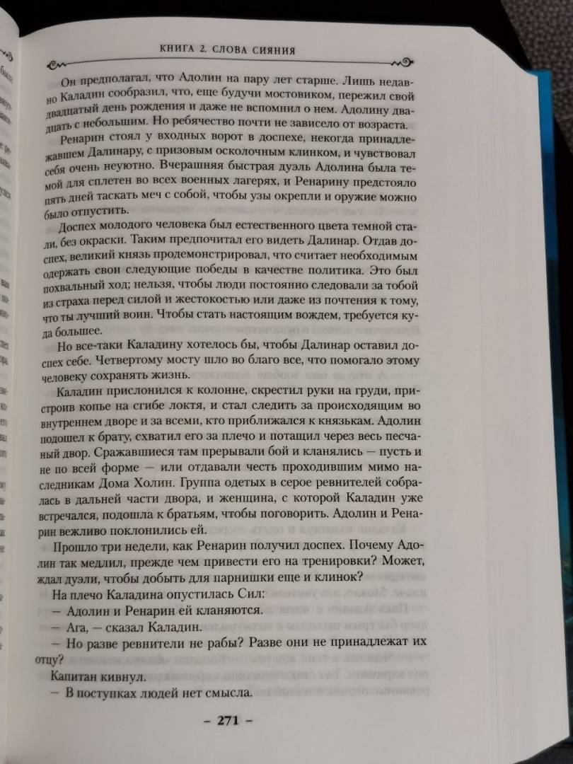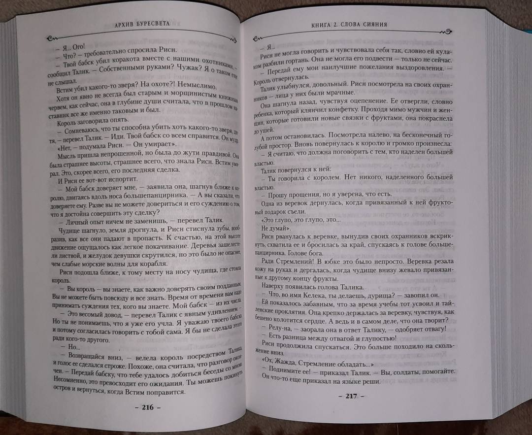 ОписаниеВопреки ожиданиям врагов Каладин Благословенный Бурей не умер рабом, но возглавил личную гвардию великого князя, и теперь на его плечах лежит обязанность защищать самого короля. Убийца в Белом вновь сеет смерть по всему Рошару, шаг за шагом приближаясь к главной цели - Далинару Холину. Шаллан Давар ставит перед собой самую амбициозную цель из всех возможных: предотвратить возвращение Приносящих пустоту, за которым должна последовать гибель всего мира. А в это время в сердце Расколотых равнин паршенди, уставшие от многолетней войны, делают роковой выбор и обращаются за помощью к той самой силе, от которой некогда бежали их предки. Выдержат ли герои новые испытания? Станут ли новыми Сияющими рыцарями?Над Рошаром сгущаются тени: до конца света осталось всего-навсего шестьдесят два дня.Вопреки ожиданиям врагов Каладин Благословенный Бурей не умер рабом, но возглавил личную гвардию великого князя, и теперь на его плечах лежит обязанность защищать самого короля. Убийца в Белом вновь сеет смерть по всему Рошару, шаг за шагом приближаясь к главной цели - Далинару Холину. Шаллан Давар ставит перед собой самую амбициозную цель из всех возможных: предотвратить возвращение Приносящих пустоту, за которым должна последовать гибель всего мира. А в это время в сердце Расколотых равнин паршенди, уставшие от многолетней войны, делают роковой выбор и обращаются за помощью к той самой силе, от которой некогда бежали их предки. Выдержат ли герои новые испытания? Станут ли новыми Сияющими рыцарями?Над Рошаром сгущаются тени: до конца света осталось всего-навсего шестьдесят два дня.