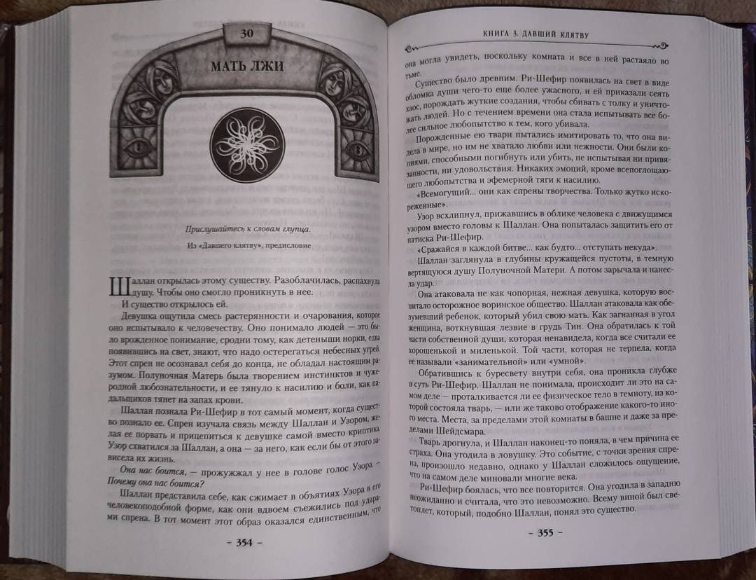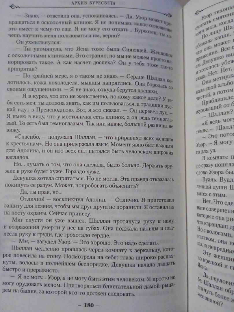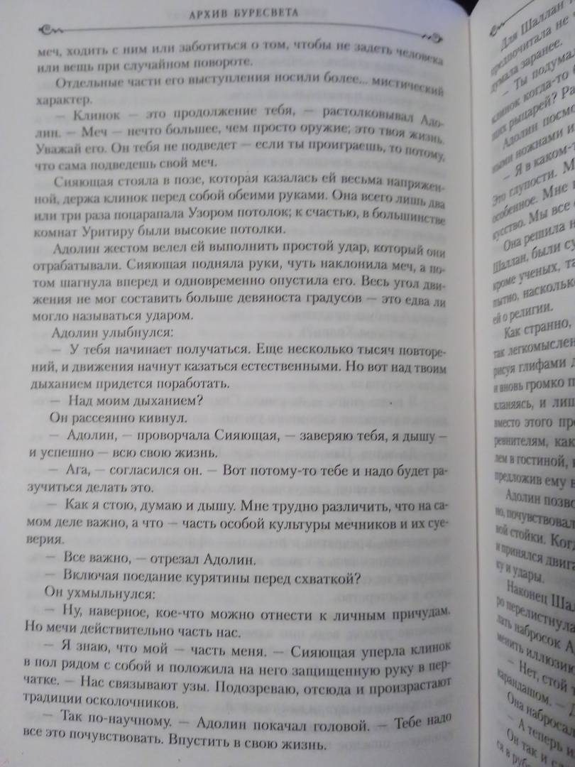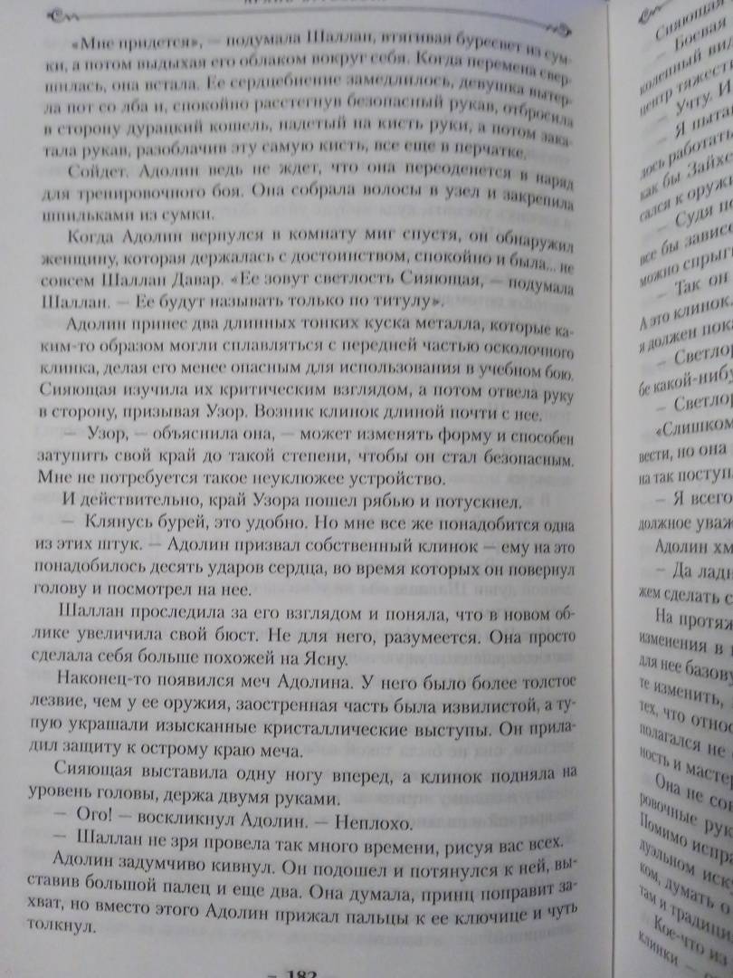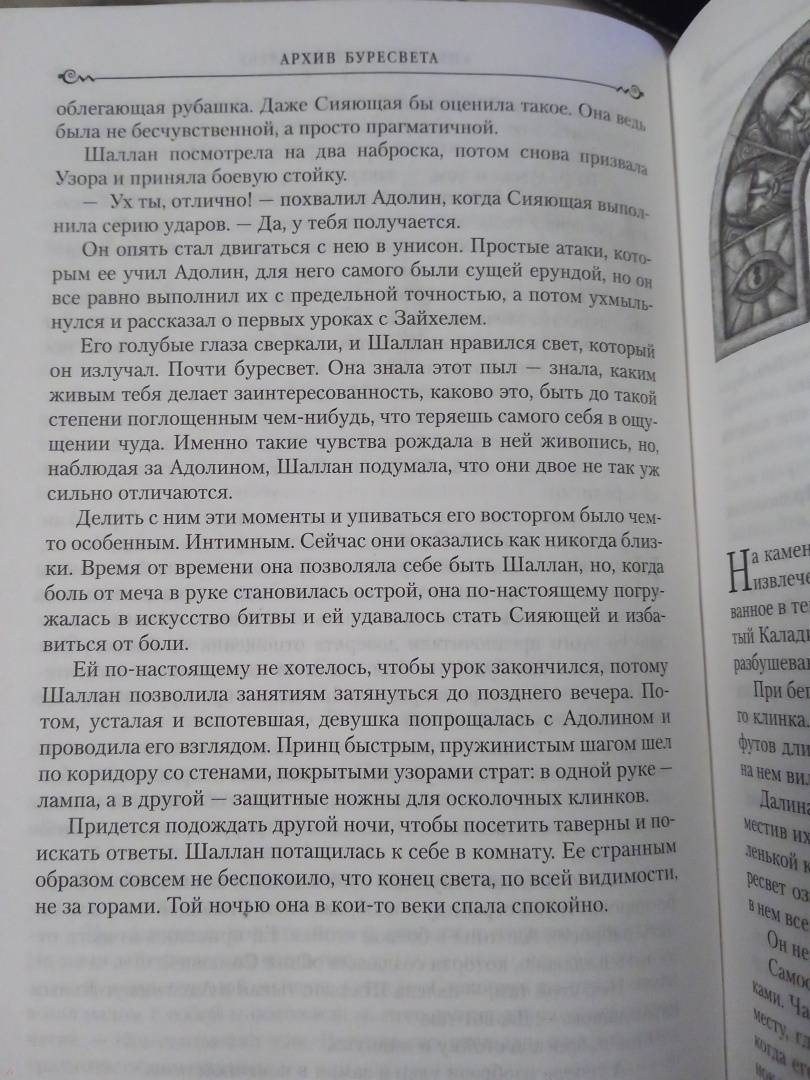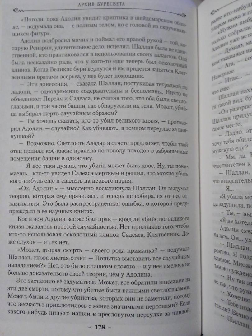 ОписаниеПредсказанная Буря бурь обрушилась на мир, вызвав новое Опустошение и вынудив человечество еще раз столкнуться с древним врагом — Приносящими пустоту; их жажду мести подпитывает злобное божество. Теперь будущее зависит только от Далинара Холина, чьи измученные сражениями войска нашли приют в древнем городе Уритиру. Но в стенах оплота Сияющих рыцарей хранятся мрачные секреты, а кровавые тайны прошлого самого Далинара мешают остальным властителям поверить в благородство его помыслов. Час нового испытания близок, однако прежде героям предстоит совершить немало странствий по просторам Рошара и выстоять в битве с темной стороной собственной души.Предсказанная Буря бурь обрушилась на мир, вызвав новое Опустошение и вынудив человечество еще раз столкнуться с древним врагом — Приносящими пустоту; их жажду мести подпитывает злобное божество. Теперь будущее зависит только от Далинара Холина, чьи измученные сражениями войска нашли приют в древнем городе Уритиру. Но в стенах оплота Сияющих рыцарей хранятся мрачные секреты, а кровавые тайны прошлого самого Далинара мешают остальным властителям поверить в благородство его помыслов. Час нового испытания близок, однако прежде героям предстоит совершить немало странствий по просторам Рошара и выстоять в битве с темной стороной собственной души.