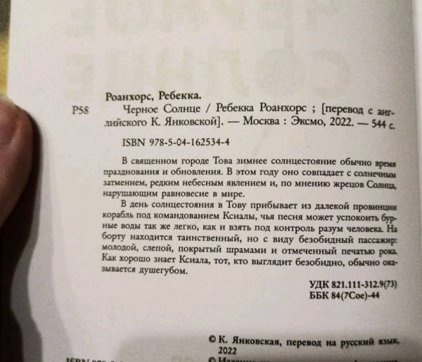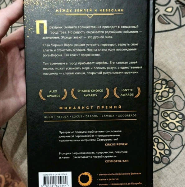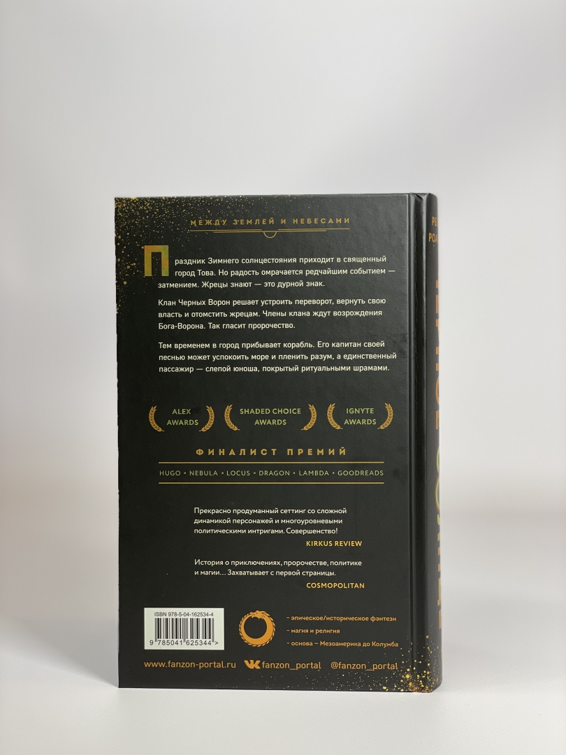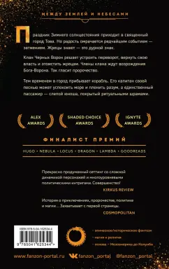 ОписаниеAlex Awards. Ignyte Awards. Shaded Choice Awards. Финалист премий Hugo, Nebula, Locus, Dragon, Lambda. В священном городе Това ждут праздника зимнего солнцестояния. В этот раз он должен сопровождаться затмением - редким явлением, нарушающим равновесие мира. Пользуясь этим, угнетенный клан Черных Ворон, пострадавший от жестокости жрецов, решает свершить месть. Черные Вороны ждут своего возрожденного Бога-Ворона, обещанного пророчеством, а в небесной башне жрецов зреет переворот. На корабле же, ведомом сквозь шторм женщиной-тиком, чья Песнь успокаивает море и пленяет разум, плывет в Тову единственный пассажир - слепой юноша, покрытый ритуальными шрамами. "Блестящий мир, который показывает все великолепие человеческого милосердия и порочности. Эпический глас нашего континента и нашего времени". - Кен Лю "Захватывающе!" - Ребекка Куанг "Абсолютно потрясающе". - Шеннон Чакраборти "Прекрасно продуманный сеттинг со сложной динамикой персонажей и многоуровневыми политическими интригами. Совершенство!" - Kirkus review "Это был Мартин, это была Джемисин, а теперь - Роанхорс". - Стивен Грэм Джойс "История о приключениях, пророчестве, политике и магии… Захватывает с первой страницы". - Cosmopolitan "Мастрид для фэнов Джемисин и Мартина, которые хотят более экзотического мира". - Booklist "Автор, перевернувшая американскую научную фантастику, фэнтези и хоррор". - The New York TimesСвернутьAlex Awards. Ignyte Awards. Shaded Choice Awards. Финалист премий Hugo, Nebula, Locus, Dragon, Lambda. В священном городе Това ждут праздника зимнего солнцестояния. В этот раз он должен сопровождаться затмением - редким явлением, нарушающим равновесие мира. Пользуясь этим, угнетенный клан Черных Ворон, пострадавший от жестокости жрецов, решает свершить месть. Черные Вороны ждут своего возрожденного Бога-Ворона, обещанного пророчеством, а в небесной башне жрецов зреет переворот. На корабле же, ведомом сквозь шторм женщиной-тиком, чья Песнь успокаивает море и пленяет разум, плывет в Тову единственный пассажир - слепой юноша, покрытый ритуальными шрамами. "Блестящий мир, который показывает все великолепие человеческого милосердия и порочности. Эпический глас нашего континента и нашего времени". - Кен Лю "Захватывающе!" - Ребекка Куанг "Абсолютно потрясающе". - Шеннон Чакраборти "Прекрасно продуманный сеттинг со сложной динамикой персонажей и многоуровневыми политическими интригами. Совершенство!" - Kirkus review "Это был Мартин, это была Джемисин, а теперь - Роанхорс". - Стивен Грэм Джойс "История о приключениях, пророчестве, политике и магии… Захватывает с первой страницы". - Cosmopolitan "Мастрид для фэнов Джемисин и Мартина, которые хотят более экзотического мира". - Booklist "Автор, перевернувшая американскую научную фантастику, фэнтези и хоррор". - The New York TimesСвернутьСвернуть