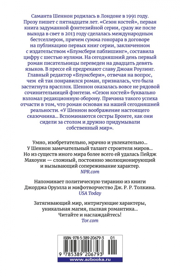 Объем, стр. 576 ISBN 978-5-389-20679-3 Автор Шеннон Саманта, Петрушина Анна Переводчик Петрушина Анна Серия С.Дж. Маас. Новая фэнтези Язык Русский Минимальный возраст 16+ Год издания книги 2022 Тип обложки Твердый переплет Иллюстрации Без иллюстраций Вес, г 690г Размеры 217х150х30 мм - Отзывы