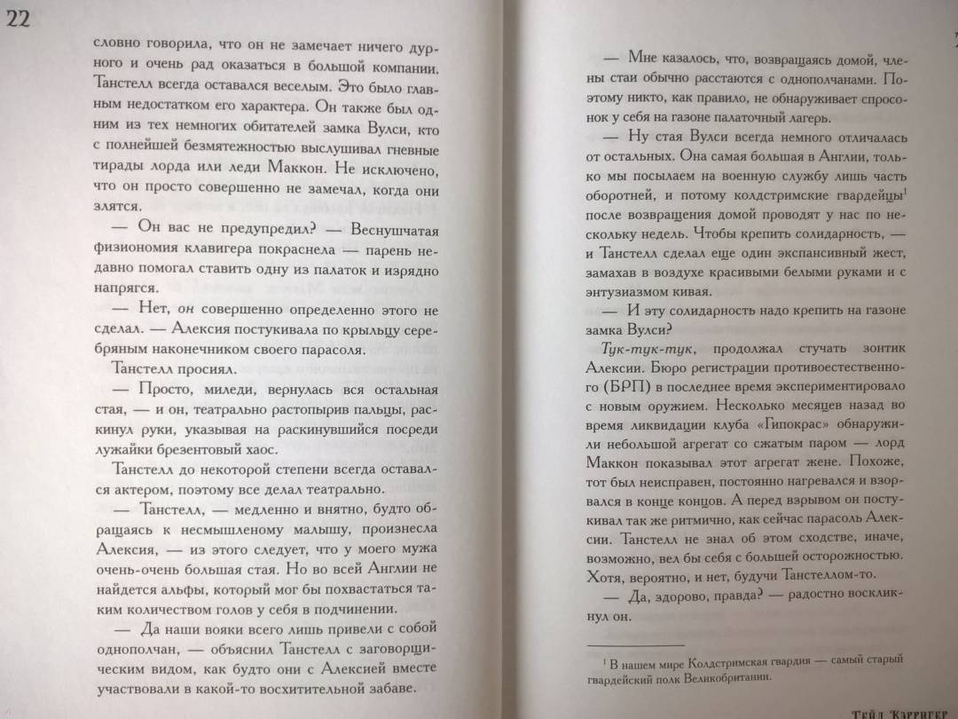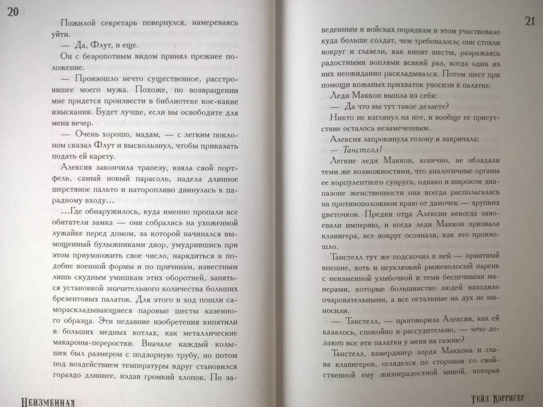 ОписаниеОднажды Алексия, молодая супруга графа Маккона, просыпается в полдень от гневных криков мужа, который, как подобает нормальному оборотню, должен в это время мирно спать... А затем он исчезает, оставив жену разбираться с целым полком сверхъестественных солдат. И это только первое звено в цепи тревожных событий, которые потребуют незамедлительного вмешательства единственной запредельной на службе ее величества королевы Виктории. Алексия Маккон, вооруженная своими уникальными способностями, здравым смыслом и зонтиком новейшей конструкции, принимает вызов. И лишь одна - но немаленькая - проблема омрачит ее триумф.Однажды Алексия, молодая супруга графа Маккона, просыпается в полдень от гневных криков мужа, который, как подобает нормальному оборотню, должен в это время мирно спать... А затем он исчезает, оставив жену разбираться с целым полком сверхъестественных солдат. И это только первое звено в цепи тревожных событий, которые потребуют незамедлительного вмешательства единственной запредельной на службе ее величества королевы Виктории. Алексия Маккон, вооруженная своими уникальными способностями, здравым смыслом и зонтиком новейшей конструкции, принимает вызов. И лишь одна - но немаленькая - проблема омрачит ее триумф.