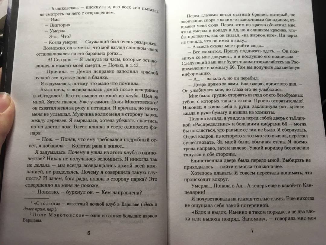 СвернутьВ свои двадцать Виктория умирает при загадочных обстоятельствах. И попадает из Варшавы в настоящий ад, где ее вербуют в дьяволицы. Должность особая — теперь девушка торгуется с ангелами за души умерших. И работает рука об руку с дьяволами Азазелем и Белетом.Нижняя Аркадия полна контрастов и на удивление напоминает земной бюрократический ад. Здесь можно притвориться живой, сотворить шикарное платье для свидания, повстречать саму Клеопатру с Цезарем или расследовать обстоятельства своей гибели. А потом очутиться на Балу Сатаны, устроить революцию и Третью Мировую... Но можно ли найти любовь в Лос-Дьяблосе? Или для этого придется вернуться на Землю?Начало трилогии польской романтической фантастики о Виктории Бьянковской, ставшей дьяволицей в самом настоящем Аду.