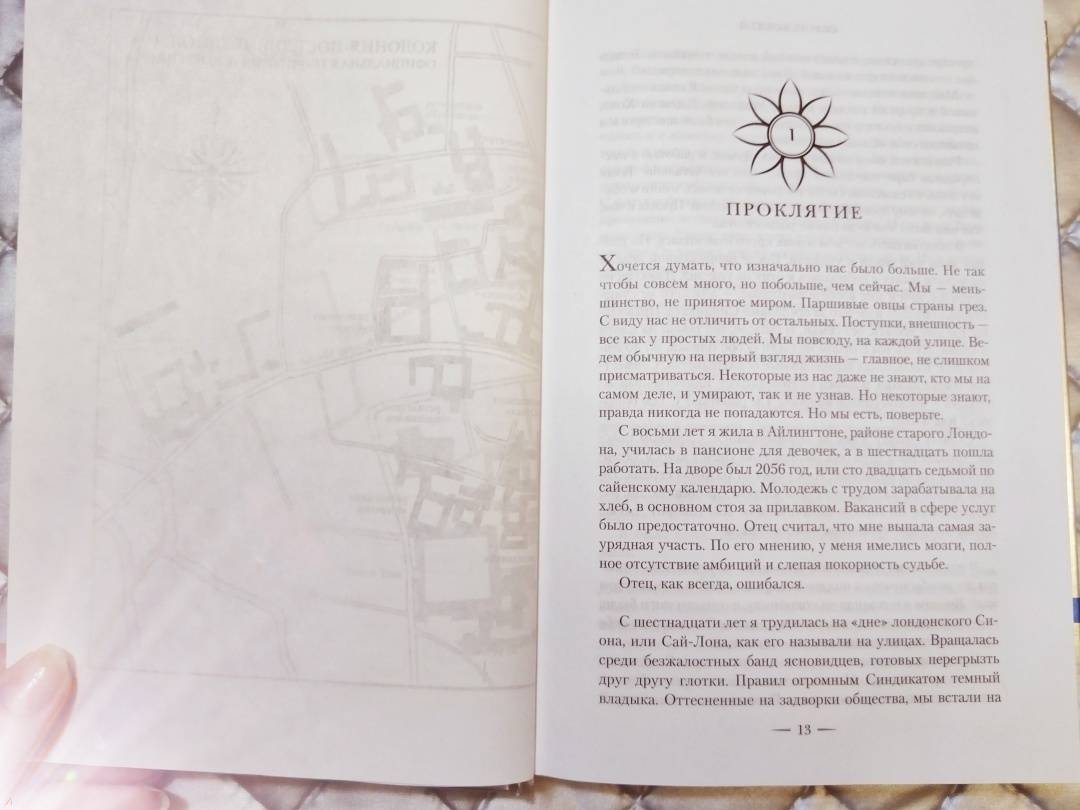 ОписаниеСередина двадцать первого века. Девятнадцатилетняя Пейдж Махоуни, вторгаясь в умы людей, добывает ценные сведения для главарей лондонских банд. Ведь эта девушка - "черный" ясновидец, она же призрачный странник. Уже само существование такого человека - преступление в новом мире, где реальное смешалось с потусторонним, где правят рефаиты - чужаки-поработители, чья свирепость сравнима разве что с их могуществом. Но однажды жизнь меняется навсегда. Пейдж арестована и доставлена в запретный город, вот уже двести лет хранящий свои тайны. И рефаит, совершенно не похожий на других представителей этой мистической расы, теперь ее господин, ее страж и наставник. И ее естественный враг. Отныне ее главная цель - вырваться на свободу.Середина двадцать первого века. Девятнадцатилетняя Пейдж Махоуни, вторгаясь в умы людей, добывает ценные сведения для главарей лондонских банд. Ведь эта девушка - "черный" ясновидец, она же призрачный странник. Уже само существование такого человека - преступление в новом мире, где реальное смешалось с потусторонним, где правят рефаиты - чужаки-поработители, чья свирепость сравнима разве что с их могуществом. Но однажды жизнь меняется навсегда. Пейдж арестована и доставлена в запретный город, вот уже двести лет хранящий свои тайны. И рефаит, совершенно не похожий на других представителей этой мистической расы, теперь ее господин, ее страж и наставник. И ее естественный враг. Отныне ее главная цель - вырваться на свободу.
