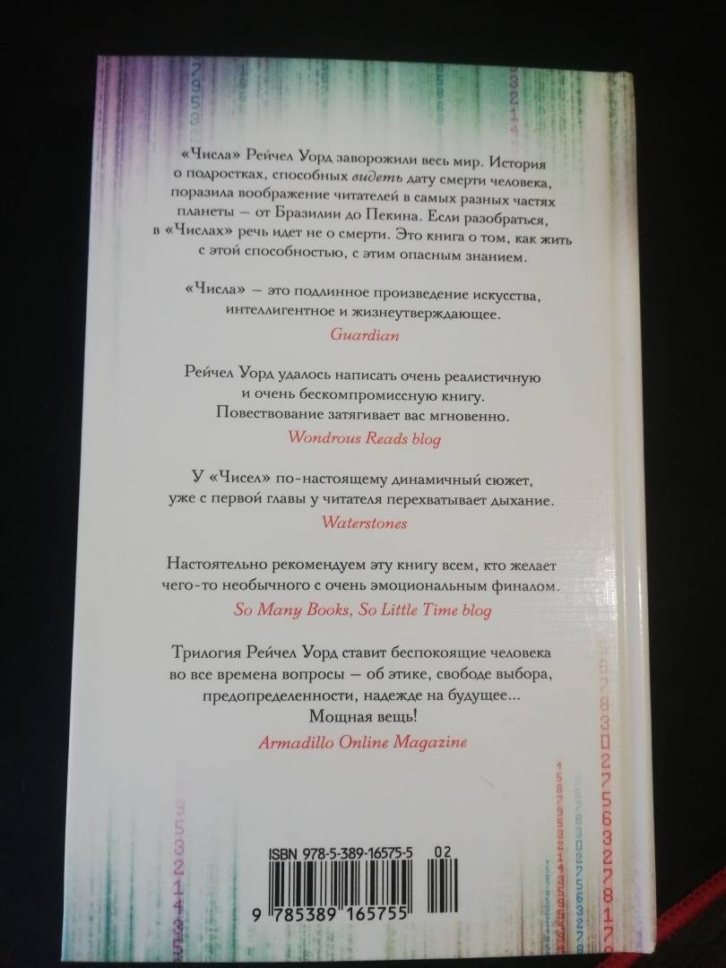 Описание"Числа" Рейчел Уорд заворожили весь мир. История о подростках, способных видеть дату смерти человека, поразила воображение читателей в самых разных частях планеты - от Бразилии до Пекина. Если разобраться, в "Числах" речь идет не о смерти. Это книга о том, как жить с этой способностью, с этим опасным знанием."Числа" Рейчел Уорд заворожили весь мир. История о подростках, способных видеть дату смерти человека, поразила воображение читателей в самых разных частях планеты - от Бразилии до Пекина. Если разобраться, в "Числах" речь идет не о смерти. Это книга о том, как жить с этой способностью, с этим опасным знанием.