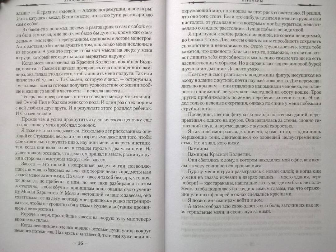 ОписаниеЕго зовут Гарри Блэкстоун Копперфилд Дрезден. Можете колдовать с этим именем - за последствия он не отвечает. Когда дела принимают странный оборот, когда то, чему положено хорониться во мраке, выползает на свет, когда никто больше не может помочь вам, звоните... Кому? Ему, Гарри Дрездену. Имя его есть в "Желтых страницах"… Что бы вы чувствовали, когда внезапно узнали бы, что у вас есть дочь? А что бы вы ощутили, если бы вам сообщили, что дочь похищена? Правильно, двойной шок. Один от радости, другой от негодования. И чтобы ее спасти, вам следует поступиться всем, что есть в вашей жизни ценного. Гарри Дрездену ради спасения дочери приходится пойти на союз с силами, откровенно ему враждебными, совершить поступки, невозможные для обыкновенного человека. И даже, если судьба заставит, своей жизни не пожалеть ("Перемены"). Беда Дрездена в том, что он единственный чародей-профессионал во всем альтернативном Чикаго, и более обратиться не к кому. Отсюда и бесчисленные конфликты. То на него окрысятся безумные некроманты, то он пересечет дорожку властным коронованным фэйри, то загадочные вампиры из Черной Коллегии заимеют на Гарри зуб… Вот из таких историй, иногда смертельно серьезных, иногда абсурдно смешных, и состоит "Адская работенка" - выборка из множества материалов, хранящихся в личных архивах Дрездена. Цикл произведений о Гарри Дрездене занимает достойное место в одном ряду с таким известным образцом фэнтези-детектива, как сериал о приключениях Гаррета, вышедший из-под пера Глена Кука.СвернутьЕго зовут Гарри Блэкстоун Копперфилд Дрезден. Можете колдовать с этим именем - за последствия он не отвечает. Когда дела принимают странный оборот, когда то, чему положено хорониться во мраке, выползает на свет, когда никто больше не может помочь вам, звоните... Кому? Ему, Гарри Дрездену. Имя его есть в "Желтых страницах"… Что бы вы чувствовали, когда внезапно узнали бы, что у вас есть дочь? А что бы вы ощутили, если бы вам сообщили, что дочь похищена? Правильно, двойной шок. Один от радости, другой от негодования. И чтобы ее спасти, вам следует поступиться всем, что есть в вашей жизни ценного. Гарри Дрездену ради спасения дочери приходится пойти на союз с силами, откровенно ему враждебными, совершить поступки, невозможные для обыкновенного человека. И даже, если судьба заставит, своей жизни не пожалеть ("Перемены"). Беда Дрездена в том, что он единственный чародей-профессионал во всем альтернативном Чикаго, и более обратиться не к кому. Отсюда и бесчисленные конфликты. То на него окрысятся безумные некроманты, то он пересечет дорожку властным коронованным фэйри, то загадочные вампиры из Черной Коллегии заимеют на Гарри зуб… Вот из таких историй, иногда смертельно серьезных, иногда абсурдно смешных, и состоит "Адская работенка" - выборка из множества материалов, хранящихся в личных архивах Дрездена. Цикл произведений о Гарри Дрездене занимает достойное место в одном ряду с таким известным образцом фэнтези-детектива, как сериал о приключениях Гаррета, вышедший из-под пера Глена Кука.СвернутьСвернуть