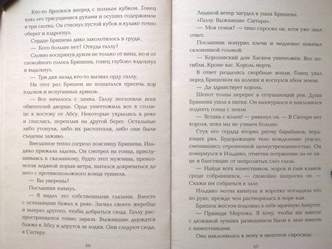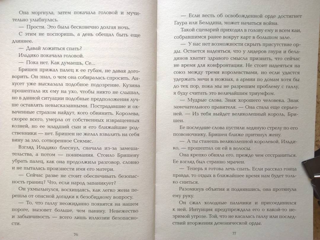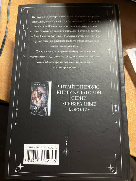 ОписаниеВ стремлении к безграничной власти Сумеречная королева Баст-Харадиса выпускает в мир темные силы. Ее младший сын, принц Бришен, внезапно становится правителем страны, охваченной ужасной эпидемией и стоящей на грани войны. А его супругу-гаури, Ильдико, заставляют принять трудное решение: ради безопасности трона она должна отказаться от любимого.Три враждующих королевства будут вынуждены объединиться ради спасения. А одноглазому королю придется собрать армию мертвых, чтобы одолеть войско проклятых.«Эйдолон» — яркий представитель жанра романтического фэнтези, а «Призрачные короли» — это та дилогия, которые обязательно рекомендуют друг другу ценители жанра.