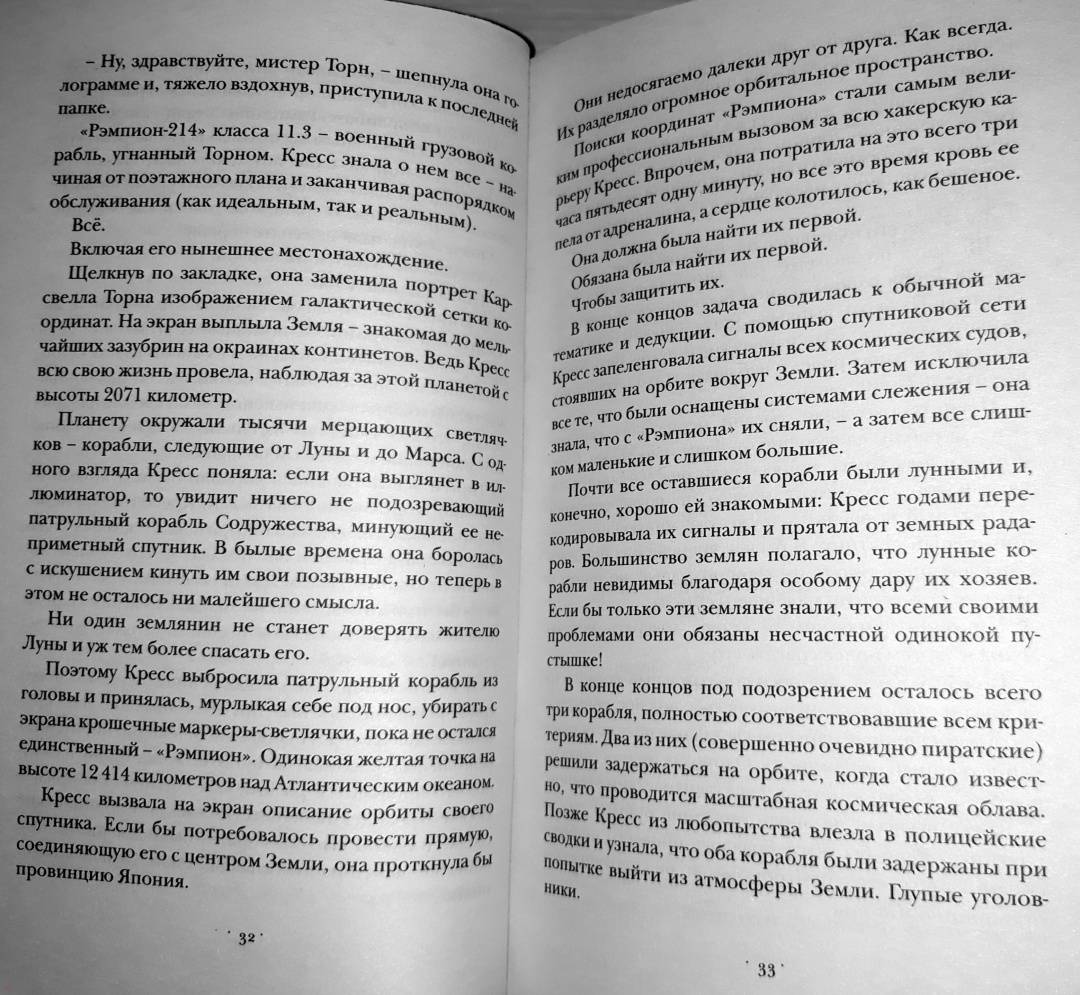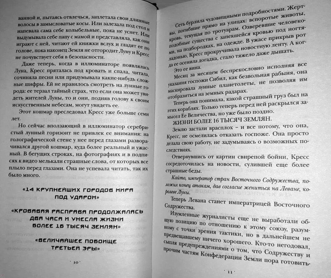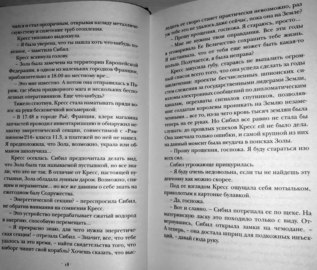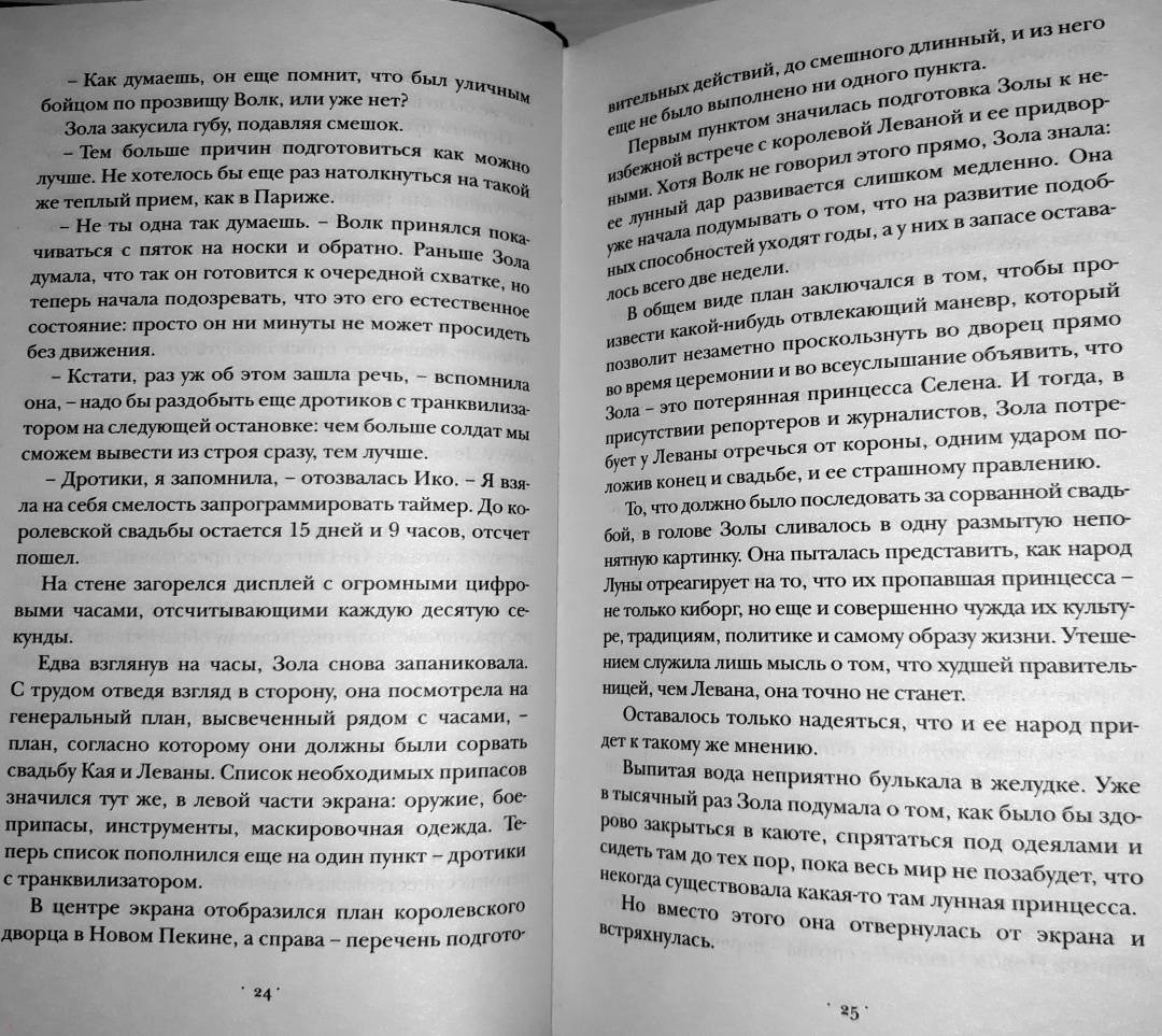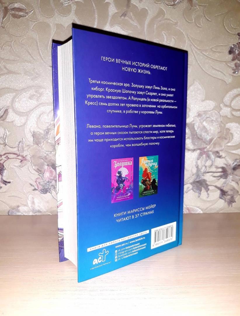 Третья космическая эра. Золушку зовут Линь Зола, и она киборг. Красную Шапочку зовут Скарлет, и она умеет управлять звездолетом.А Рапунцель (в новой реальности — Кресс) семь долгих лет провела в заточении на орбитальном спутнике, в рабстве у королевы Луны.Левана, повелительница Луны, угрожает землянам гибелью, а герои вечных сказок пытаются спасти мир,хотя теперь им чаще приходится использовать бластеры и космические корабли, чем волшебную палочку.Марисса Мейер - американская писательница, которая страстно любит книги и путешествия. «Рапунцель» - третья часть цикла «Лунные хроники», завоевавшего любовь многомиллионной читательской аудитории. «Бестселлер». - The New York Times Роман переведен на 25 языков. -