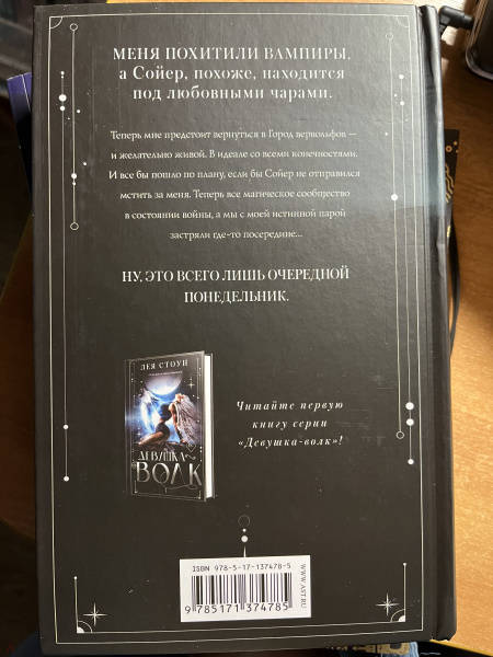 ОписаниеМеня похитили вампиры, а Сойер, похоже, находится под любовными чарами.Теперь мне предстоит вернуться в Город вервольфов и желательно живой. В идеале со всеми конечностями.И все бы пошло по плану, если бы Сойер не отправился мстить за меня. Теперь все магическое сообщество в состоянии войны, а мы с моей истинной парой застряли где-то посередине…Ну, это всего лишь очередной понедельник.Меня похитили вампиры, а Сойер, похоже, находится под любовными чарами.Теперь мне предстоит вернуться в Город вервольфов и желательно живой. В идеале со всеми конечностями.И все бы пошло по плану, если бы Сойер не отправился мстить за меня. Теперь все магическое сообщество в состоянии войны, а мы с моей истинной парой застряли где-то посередине…Ну, это всего лишь очередной понедельник.