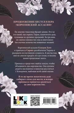 ОписаниеБестселлер The New York Times. Продолжение "Королевского ассасина", романтического фэнтези об опасном наемном убийце, его загадочной ученице и дворцовых интригах. Для фанатов Сары Дж. Маас, Виктории Авеярд, Холли Блэк и Лоры Себастьян. По землям Авантина бродит демон. Это не кто иной, как король Тиран, похититель душ, чудовище из древних преданий. За три века он сменил множество лиц и уничтожил бессчетное количество невинных жизней. Королевский ассасин Кэледон Холт и принцесса Сирень разоблачили Тирана и раскрыли его истинную сущность. К несчастью, они не смогли предать его дух огню, и посему демон продолжает жить. Принцессе предстоит выйти замуж, чтобы объединить два королевства. Она должна родить наследника и навсегда расстаться с Кэледоном, любовью всей своей жизни. В то же время похититель душ собирает силы для мести, и вскоре принцессе придется сразиться за свое королевство. "Захватывающий сюжет, который цепляет читателя с первой строчки, закрученные сюжетные повороты, магические элементы и юмористические вставки". - School Library Journal Мелисса де ла Круз - популярная американская писательница бестселлеров The New York Times и USA Today.СвернутьБестселлер The New York Times. Продолжение "Королевского ассасина", романтического фэнтези об опасном наемном убийце, его загадочной ученице и дворцовых интригах. Для фанатов Сары Дж. Маас, Виктории Авеярд, Холли Блэк и Лоры Себастьян. По землям Авантина бродит демон. Это не кто иной, как король Тиран, похититель душ, чудовище из древних преданий. За три века он сменил множество лиц и уничтожил бессчетное количество невинных жизней. Королевский ассасин Кэледон Холт и принцесса Сирень разоблачили Тирана и раскрыли его истинную сущность. К несчастью, они не смогли предать его дух огню, и посему демон продолжает жить. Принцессе предстоит выйти замуж, чтобы объединить два королевства. Она должна родить наследника и навсегда расстаться с Кэледоном, любовью всей своей жизни. В то же время похититель душ собирает силы для мести, и вскоре принцессе придется сразиться за свое королевство. "Захватывающий сюжет, который цепляет читателя с первой строчки, закрученные сюжетные повороты, магические элементы и юмористические вставки". - School Library Journal Мелисса де ла Круз - популярная американская писательница бестселлеров The New York Times и USA Today.СвернутьСвернуть