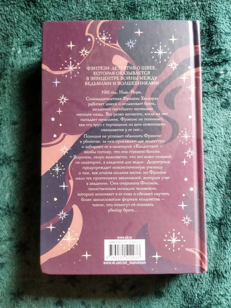 ОписаниеФэнтези-детектив о швее, которая оказывается в эпицентре войны между ведьмами и волшебниками1911, Нью-ЙоркСемнадцатилетняя Фрэнсис Хеллоуэл работает швеей и оплакивает брата, загадочно погибшего несколько месяцев назад. Все резко меняется, когда на нее нападает начальник. Фрэнсис не понимает, как его труп c торчащими из шеи ножницами оказывается у ее ног…Полиция не успевает обвинить Фрэнсис в убийстве: за ней приезжают две медсестры и забирают ее в санаторий "Колдостан" - якобы потому, что она страшно больна. Впрочем, скоро выясняется, что это вовсе никакой не санаторий, а академия для ведьм. Директриса предупреждает новоиспеченную ученицу о том, как опасна сильная магия, но Фрэнсис мало тех простеньких заклинаний, которым учат в академии. Она очарована Финном, таинственным молодым человеком, который возникает в ее снах и обещает научить более замысловатым формам колдовства - таким, что помогут ей отыскать убийцу брата....— Бестселлер The New York Times! Новинка в серии «Суперведьмы».