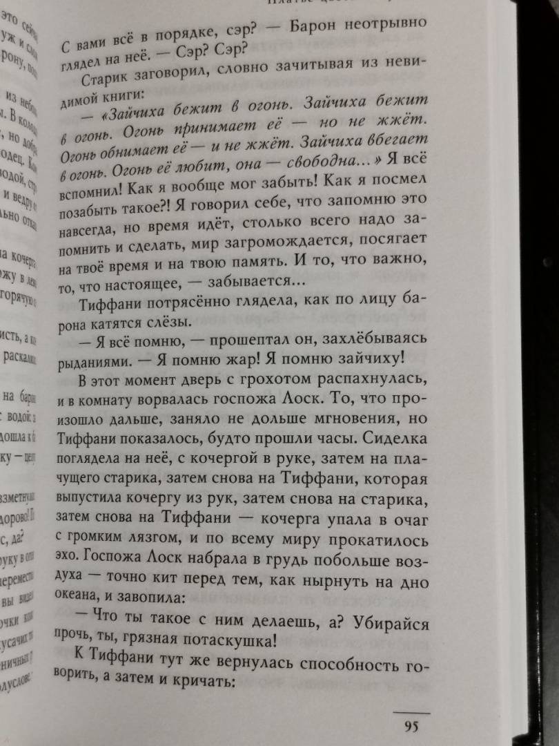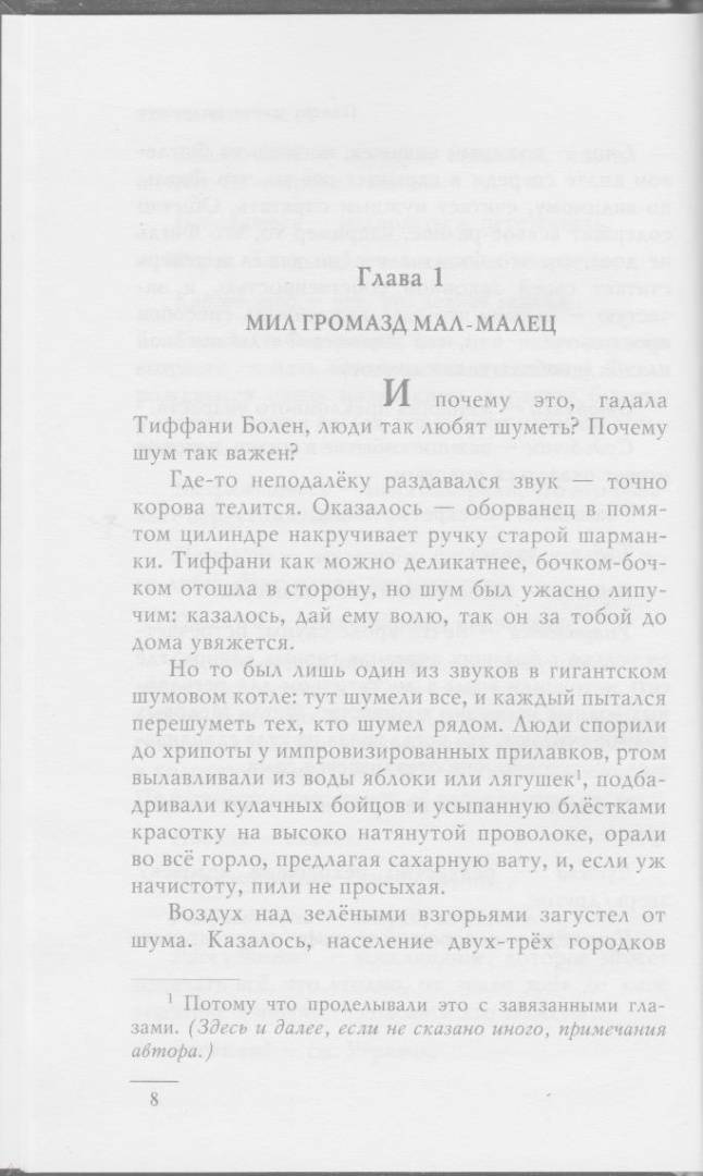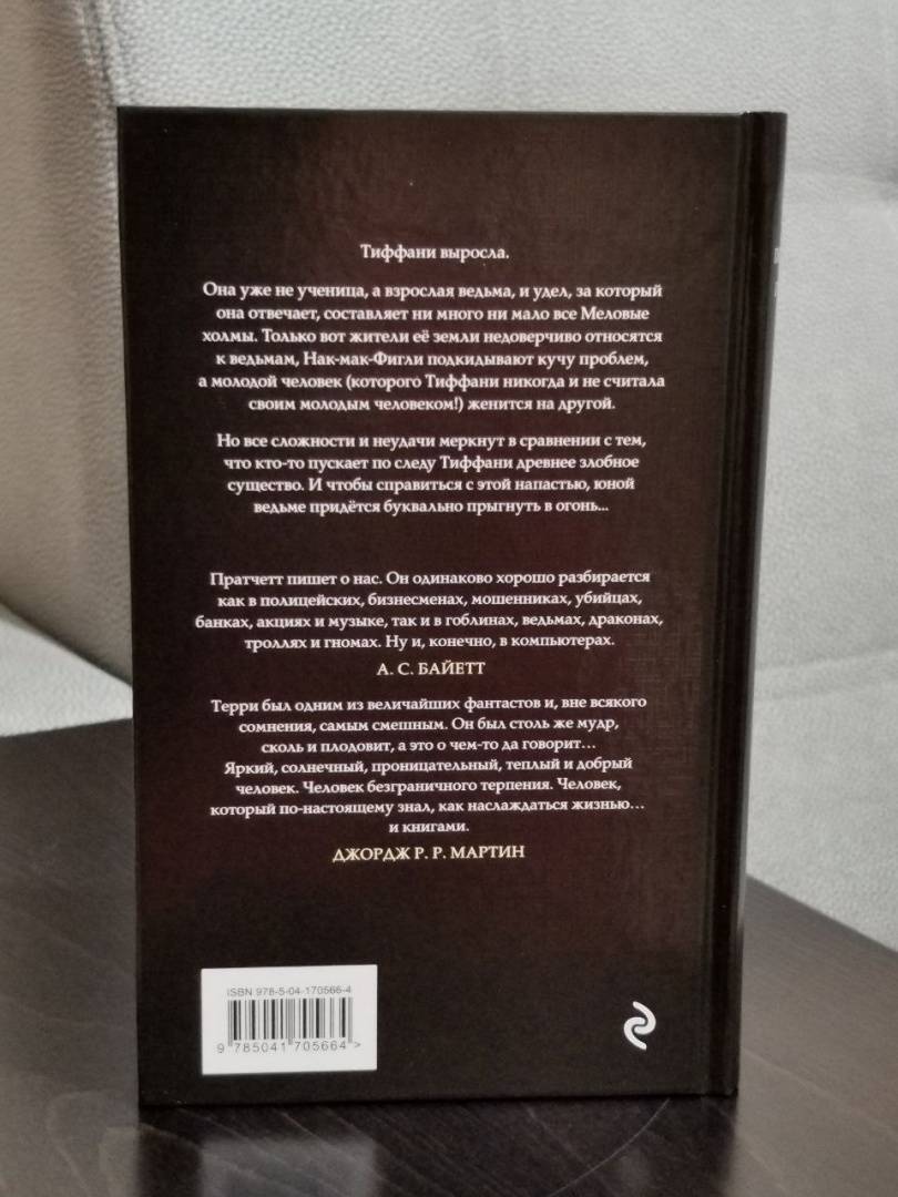 ОписаниеТиффани выросла. Она уже не ученица, а взрослая ведьма, и удел, за который она отвечает, составляет ни много ни мало все Меловые холмы. Только вот жители её земли недоверчиво относятся к ведьмам, Нак-мак-Фигли подкидывают кучу проблем, а молодой человек (которого Тиффани никогда и не считала своим молодым человеком!) женится на другой. Но все сложности и неудачи меркнут в сравнении с тем, что кто-то пускает по следу Тиффани древнее злобное существо. И, чтобы справиться с этой напастью, юной ведьме придётся буквально прыгнуть в огонь...Четвёртая книга о приключениях юной ведьмы Тиффани Болен.Тиффани выросла. Она уже не ученица, а взрослая ведьма, и удел, за который она отвечает, составляет ни много ни мало все Меловые холмы. Только вот жители её земли недоверчиво относятся к ведьмам, Нак-мак-Фигли подкидывают кучу проблем, а молодой человек (которого Тиффани никогда и не считала своим молодым человеком!) женится на другой. Но все сложности и неудачи меркнут в сравнении с тем, что кто-то пускает по следу Тиффани древнее злобное существо. И, чтобы справиться с этой напастью, юной ведьме придётся буквально прыгнуть в огонь...Четвёртая книга о приключениях юной ведьмы Тиффани Болен.