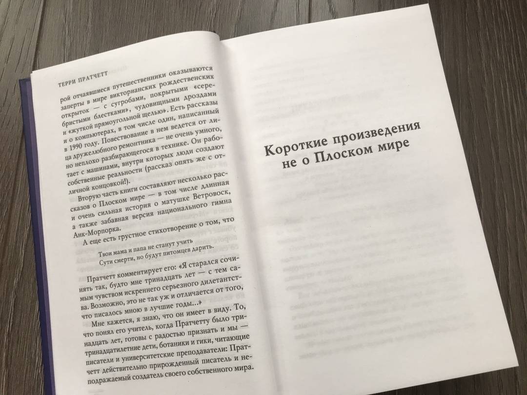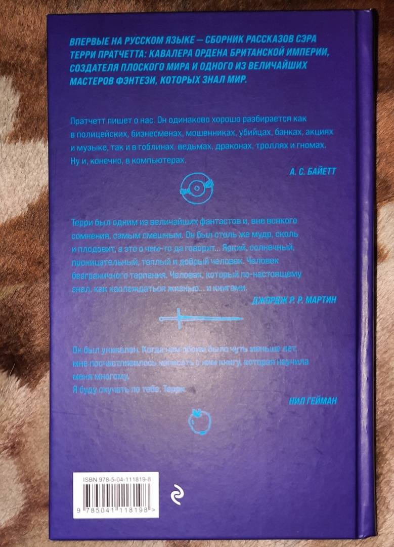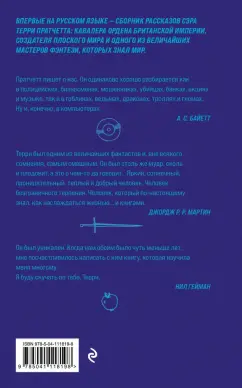 ОписаниеДьявол нанимает рекламщика, чтобы популяризировать Ад. Писатель убивает опостылевшего персонажа, но следующим утром тот объявляется на пороге его дома. Незадачливые путешественники попадают в мир оживших рождественских открыток - и видят там то, что Лавкрафту не снилось. Волшебники Незримого Университета думают, как пережить проверку лорда Витинари, а капитан Моркоу решает проблему преступности среди анк-морпоркской молодежи.Встречайте сборник коротких историй сэра Терри Пратчетта: от фэнтези и стихов до научной фантастики, от первого опубликованного рассказа, написанного юным Терри в 13 лет, до отрывков, не вошедших в повести о Плоском мире.Дьявол нанимает рекламщика, чтобы популяризировать Ад. Писатель убивает опостылевшего персонажа, но следующим утром тот объявляется на пороге его дома. Незадачливые путешественники попадают в мир оживших рождественских открыток - и видят там то, что Лавкрафту не снилось. Волшебники Незримого Университета думают, как пережить проверку лорда Витинари, а капитан Моркоу решает проблему преступности среди анк-морпоркской молодежи.Встречайте сборник коротких историй сэра Терри Пратчетта: от фэнтези и стихов до научной фантастики, от первого опубликованного рассказа, написанного юным Терри в 13 лет, до отрывков, не вошедших в повести о Плоском мире.