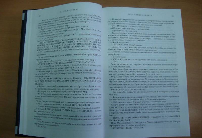 ОписаниеСмерть Плоского мира - не некая абстрактная неприятность, что случается рано или поздно с каждым из нас. О нет! Смерть - это он. Со всеми вытекающими… Он весьма ответственный, ведь всем известно, как это неприятно - умереть не вовремя.У него есть дочь, собственный дом, слуга Альберт (в миру - самый могущественный волшебник Плоского мира и основатель Незримого университета - Альберто Малих) и лошадь Бинки (да, живая, ибо возня со скелетами уже порядком поднадоела).В общем, Смерть Плоского мира - весьма примечательная личность. И из-за этого и начинаются проблемы… Во-первых, Смерть стал дедушкой. Во-вторых, Он снова подался в народ… Который то сходит с ума от новой музыки, то вдруг решил обойтись без Санта-Хрякуса на главном празднике года. В общем, скучать не придется никому. P.S. В эпизодах: Смерть Крыс, преподаватели Незримого Университета (и Библиотекарь) в полном составе, "Рок-Группа", эльф Альберто, Бог похмелья, Зубная фея и проч.Смерть Плоского мира - не некая абстрактная неприятность, что случается рано или поздно с каждым из нас. О нет! Смерть - это он. Со всеми вытекающими… Он весьма ответственный, ведь всем известно, как это неприятно - умереть не вовремя.У него есть дочь, собственный дом, слуга Альберт (в миру - самый могущественный волшебник Плоского мира и основатель Незримого университета - Альберто Малих) и лошадь Бинки (да, живая, ибо возня со скелетами уже порядком поднадоела).В общем, Смерть Плоского мира - весьма примечательная личность. И из-за этого и начинаются проблемы… Во-первых, Смерть стал дедушкой. Во-вторых, Он снова подался в народ… Который то сходит с ума от новой музыки, то вдруг решил обойтись без Санта-Хрякуса на главном празднике года. В общем, скучать не придется никому. P.S. В эпизодах: Смерть Крыс, преподаватели Незримого Университета (и Библиотекарь) в полном составе, "Рок-Группа", эльф Альберто, Бог похмелья, Зубная фея и проч.