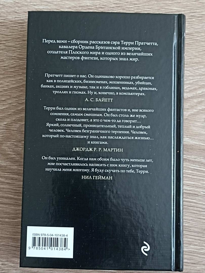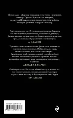 ОписаниеДьявол нанимает рекламщика, чтобы популяризировать Ад. Писатель убивает опостылевшего персонажа, но следующим утром тот объявляется на пороге его дома. Незадачливые путешественники попадают в мир оживших рождественских открыток — и видят там то, что Лавкрафту не снилось. Волшебники Незримого Университета думают, как пережить проверку лорда Витинари, а капитан Моркоу решает проблему преступности среди анк-морпоркской молодежи. Встречайте сборник коротких историй сэра Терри Пратчетта: от фэнтези и стихов до научной фантастики, от первого опубликованного рассказа, написанного юным Терри в 13 лет, до отрывков, не вошедших в повести о Плоском мире.Дьявол нанимает рекламщика, чтобы популяризировать Ад. Писатель убивает опостылевшего персонажа, но следующим утром тот объявляется на пороге его дома. Незадачливые путешественники попадают в мир оживших рождественских открыток — и видят там то, что Лавкрафту не снилось. Волшебники Незримого Университета думают, как пережить проверку лорда Витинари, а капитан Моркоу решает проблему преступности среди анк-морпоркской молодежи. Встречайте сборник коротких историй сэра Терри Пратчетта: от фэнтези и стихов до научной фантастики, от первого опубликованного рассказа, написанного юным Терри в 13 лет, до отрывков, не вошедших в повести о Плоском мире.