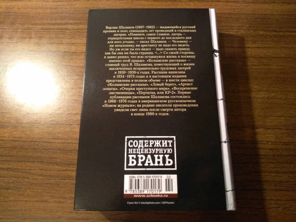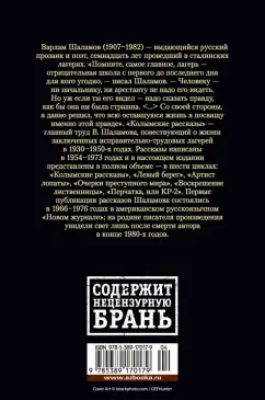 ОписаниеВарлам Шаламов (1907–1982) — выдающийся русский прозаик и поэт, семнадцать лет проведший в сталинских лагерях. «Помните, самое главное, лагерь — отрицательная школа с первого до последнего дня для кого угодно, — писал Шаламов. — Человеку — ни начальнику, ни арестанту не надо его видеть. Но уж если ты его видел — надо сказать правду, как бы она ни была страшна. <…> Со своей стороны я давно решил, что всю оставшуюся жизнь я посвящу именно этой правде». «Колымские рассказы» — главный труд В. Шаламова, повествующий о жизни заключенных исправительно-трудовых лагерей в 1930–1950 гг. Рассказы написаны в 1954–1973 гг. и в настоящем издании представлены в полном объеме — в шести циклах: «Колымские рассказы», «Левый берег», «Артист лопаты», «Очерки преступного мира», «Воскрешение лиственницы», «Перчатка, или КР-2». Первые публикации рассказов Шаламова состоялись в 1966–1976 гг. в американском русскоязычном «Новом журнале»; на родине писателя произведения увидели свет лишь после смерти автора в конце 1980-х годов.СвернутьВарлам Шаламов (1907–1982) — выдающийся русский прозаик и поэт, семнадцать лет проведший в сталинских лагерях. «Помните, самое главное, лагерь — отрицательная школа с первого до последнего дня для кого угодно, — писал Шаламов. — Человеку — ни начальнику, ни арестанту не надо его видеть. Но уж если ты его видел — надо сказать правду, как бы она ни была страшна. <…> Со своей стороны я давно решил, что всю оставшуюся жизнь я посвящу именно этой правде». «Колымские рассказы» — главный труд В. Шаламова, повествующий о жизни заключенных исправительно-трудовых лагерей в 1930–1950 гг. Рассказы написаны в 1954–1973 гг. и в настоящем издании представлены в полном объеме — в шести циклах: «Колымские рассказы», «Левый берег», «Артист лопаты», «Очерки преступного мира», «Воскрешение лиственницы», «Перчатка, или КР-2». Первые публикации рассказов Шаламова состоялись в 1966–1976 гг. в американском русскоязычном «Новом журнале»; на родине писателя произведения увидели свет лишь после смерти автора в конце 1980-х годов.СвернутьСвернуть