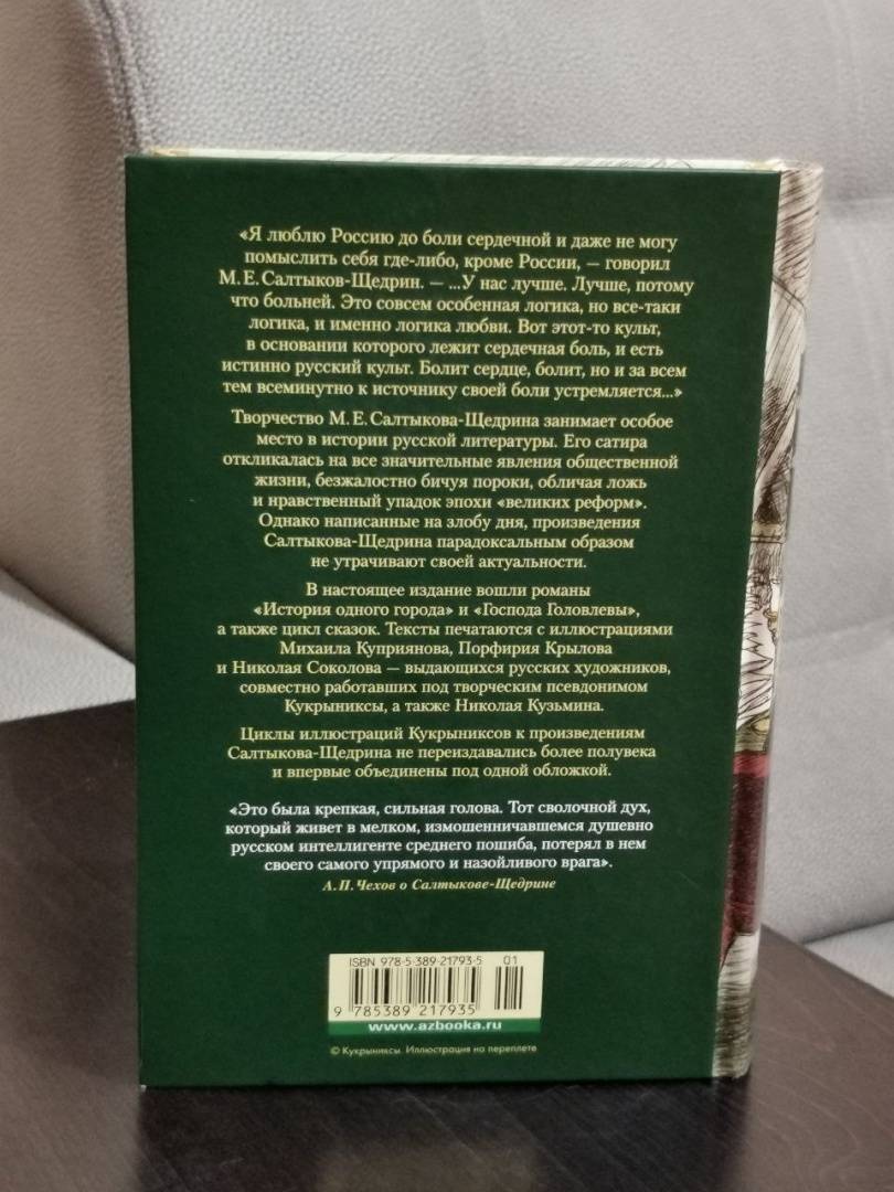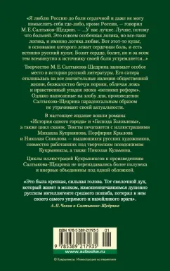 ОписаниеТворчество М. Е. Салтыкова-Щедрина занимает особое место в истории русской литературы. Его сатира откликалась на все значительные явления общественной жизни, безжалостно бичуя пороки, обличая ложь и нравственный упадок эпохи "великих реформ". Однако написанные на злобу дня, произведения Салтыкова-Щедрина парадоксальным образом не утрачивают своей актуальности. В настоящее издание вошли романы "История одного города" и "Господа Головлевы", а также сказки. Тексты печатаются с иллюстрациями Михаила Куприянова, Порфирия Крылова и Николая Соколова - выдающихся русских художников, совместно работавших под творческим псевдонимом Кукрыниксы, а также Николая Кузьмина.Творчество М. Е. Салтыкова-Щедрина занимает особое место в истории русской литературы. Его сатира откликалась на все значительные явления общественной жизни, безжалостно бичуя пороки, обличая ложь и нравственный упадок эпохи "великих реформ". Однако написанные на злобу дня, произведения Салтыкова-Щедрина парадоксальным образом не утрачивают своей актуальности. В настоящее издание вошли романы "История одного города" и "Господа Головлевы", а также сказки. Тексты печатаются с иллюстрациями Михаила Куприянова, Порфирия Крылова и Николая Соколова - выдающихся русских художников, совместно работавших под творческим псевдонимом Кукрыниксы, а также Николая Кузьмина.