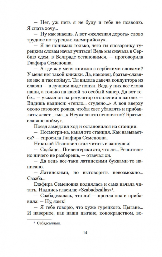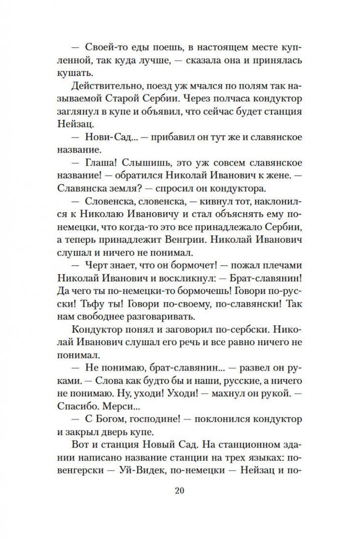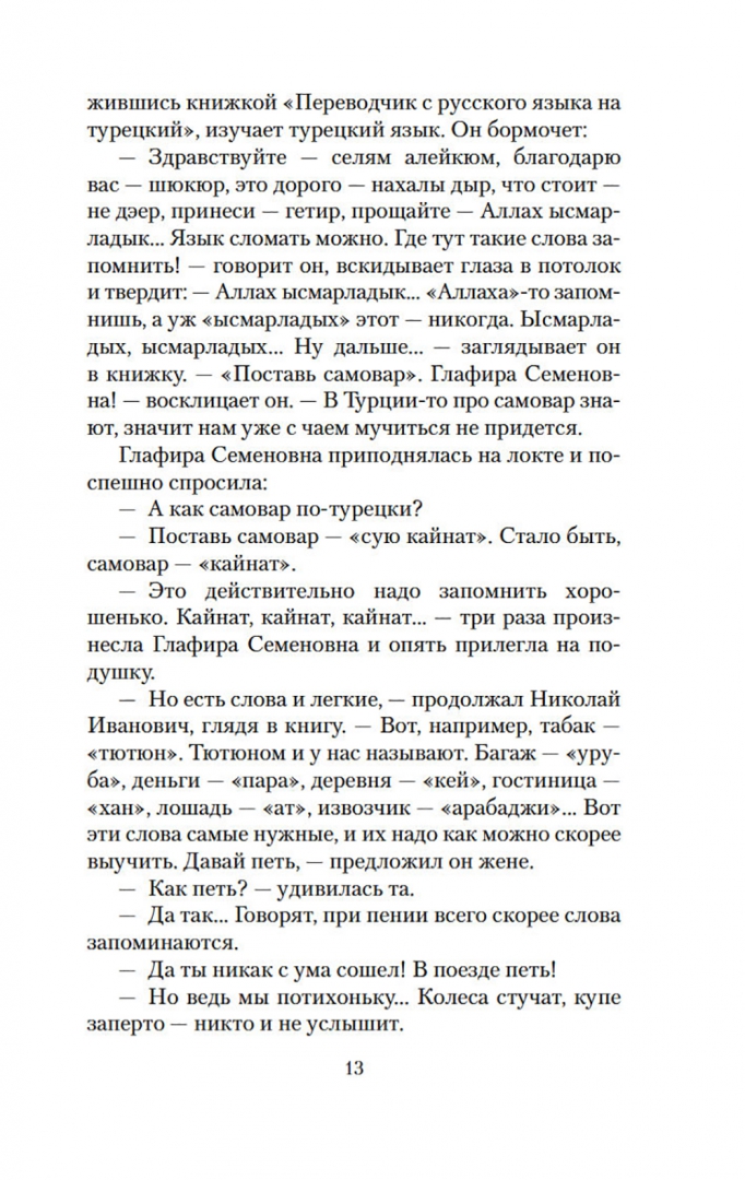 ОписаниеНиколай Александрович Лейкин - в свое время известный петербургский писатель-юморист, журналист, издатель. Его популярность была колоссальной: поэт А. Блок назвал конец XIX века "эпохой Александра III и писателя Лейкина". А. П. Чехов считал Лейкина своим "крестным батькой": с начала 1880-х годов Лейкин издавал собственный журнал - юмористический еженедельник "Осколки", к сотрудничеству в котором привлек молодого Антона Чехова, раскрыв его талант. "Наши за границей" - одно из самых известных произведений Лейкина. Веселое повествование о путешествиях купца Николая Ивановича Иванова и его жены Глафиры Семеновны, о забавных приключениях и всевозможных недоразумениях, которые случаются с героями в чужих краях, настолько понравилось читателям, что Лейкин написал несколько продолжений. Как следует из названия этой книги, супруги Ивановы решили побывать в Турции. По пути в Стамбул им предстоит посетить "славянские земли" и провести несколько дней в Белграде и Софии. Читатели Лейкина видят мир глазами его героев, - и этот во многом наивный взгляд подмечает характерные особенности национальных культур и традиций. Купеческую чету ждут новые встречи, открытия и настоящие испытания.СвернутьНиколай Александрович Лейкин - в свое время известный петербургский писатель-юморист, журналист, издатель. Его популярность была колоссальной: поэт А. Блок назвал конец XIX века "эпохой Александра III и писателя Лейкина". А. П. Чехов считал Лейкина своим "крестным батькой": с начала 1880-х годов Лейкин издавал собственный журнал - юмористический еженедельник "Осколки", к сотрудничеству в котором привлек молодого Антона Чехова, раскрыв его талант. "Наши за границей" - одно из самых известных произведений Лейкина. Веселое повествование о путешествиях купца Николая Ивановича Иванова и его жены Глафиры Семеновны, о забавных приключениях и всевозможных недоразумениях, которые случаются с героями в чужих краях, настолько понравилось читателям, что Лейкин написал несколько продолжений. Как следует из названия этой книги, супруги Ивановы решили побывать в Турции. По пути в Стамбул им предстоит посетить "славянские земли" и провести несколько дней в Белграде и Софии. Читатели Лейкина видят мир глазами его героев, - и этот во многом наивный взгляд подмечает характерные особенности национальных культур и традиций. Купеческую чету ждут новые встречи, открытия и настоящие испытания.СвернутьСвернуть