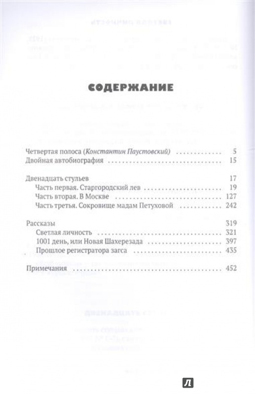 ОписаниеВ первый том Собрания сочинений знаменитого дуэта вошли дебютный роман "Двенадцать стульев", повесть "Светлая личность" и сборник рассказов "1001 день, или Шахерезада", а также рассказ "Прошлое регистратора загса", считавшийся неизданной главой первого романа Ильфа и Петрова. В качестве предисловия к этому тому приводится очерк К. Г. Паустовского "Четвертая полоса".В первый том Собрания сочинений знаменитого дуэта вошли дебютный роман "Двенадцать стульев", повесть "Светлая личность" и сборник рассказов "1001 день, или Шахерезада", а также рассказ "Прошлое регистратора загса", считавшийся неизданной главой первого романа Ильфа и Петрова. В качестве предисловия к этому тому приводится очерк К. Г. Паустовского "Четвертая полоса".