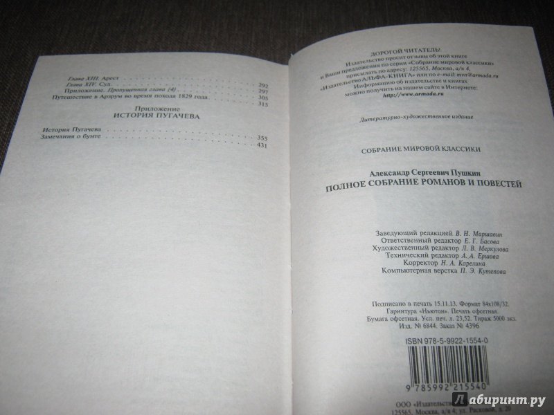 Объем, стр. 448 ISBN 978-5-9922-1554-0 Автор Пушкин Александр Сергеевич Серия Собрание мировой классики Год издания книги 2014 Тип обложки Твердый переплет Иллюстрации Без иллюстраций Вес, г 324г Размеры 205х131х30 мм - Отзывы