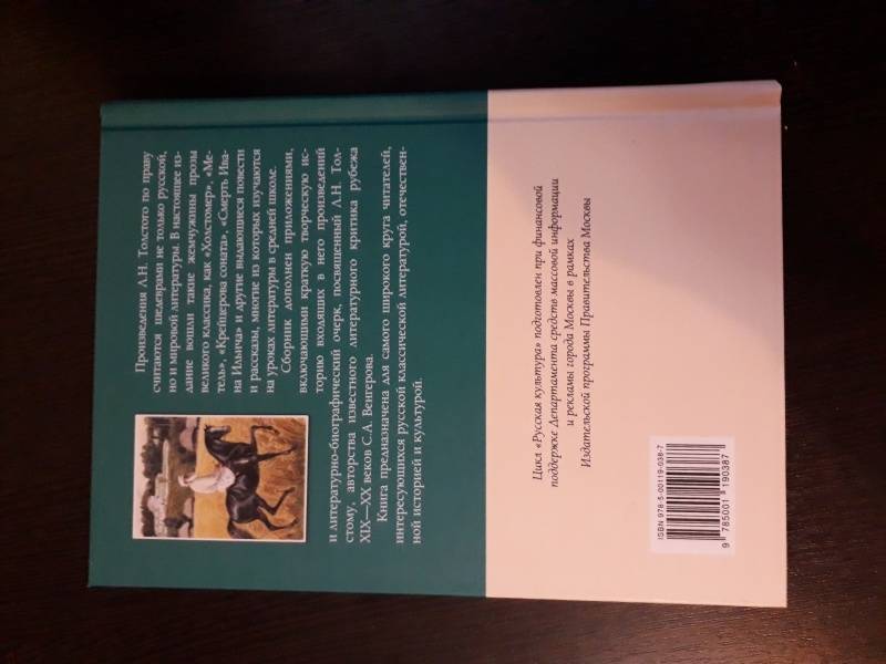 ОписаниеПроизведения Л.Н. Толстого по праву считаются шедеврами не только русской, но и мировой литературы. В настоящее издание вошли такие жемчужины прозы великого классика, как "Холстомер", "Метель", "Крейцерова соната", "Смерть Ивана Ильича" и другие выдающиеся повести и рассказы, многие из которых изучаются на уроках литературы в средней школе. Сборник дополнен приложениями, включающими краткую творческую историю входящих в него произведений и литературно-биографический очерк, посвященный Л.Н. Толстому, авторства известного литературного критика рубежа XIX-XX веков С.А. Венгерова.Книга предназначена для самого широкого круга читателей, интересующихся русской классической литературой, отечественной историей и культурой.Произведения Л.Н. Толстого по праву считаются шедеврами не только русской, но и мировой литературы. В настоящее издание вошли такие жемчужины прозы великого классика, как "Холстомер", "Метель", "Крейцерова соната", "Смерть Ивана Ильича" и другие выдающиеся повести и рассказы, многие из которых изучаются на уроках литературы в средней школе. Сборник дополнен приложениями, включающими краткую творческую историю входящих в него произведений и литературно-биографический очерк, посвященный Л.Н. Толстому, авторства известного литературного критика рубежа XIX-XX веков С.А. Венгерова.Книга предназначена для самого широкого круга читателей, интересующихся русской классической литературой, отечественной историей и культурой.