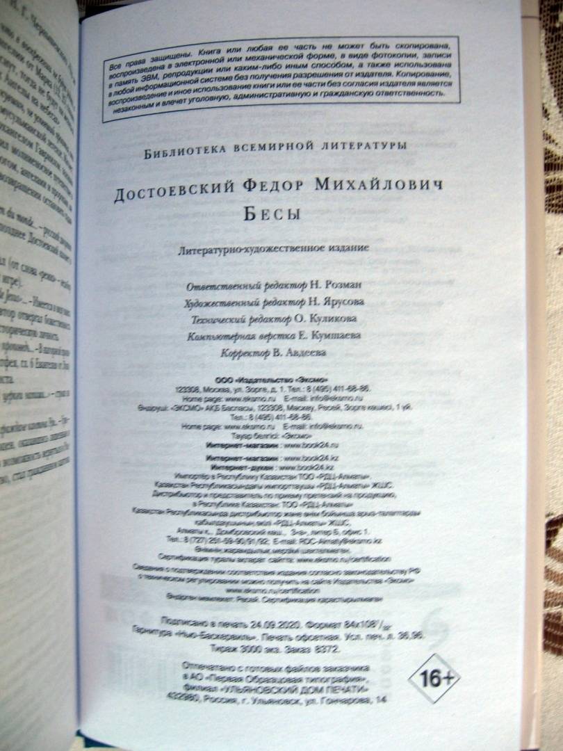 Объем, стр. 704 ISBN 978-5-04-116669-4 Автор Достоевский Федор Михайлович Серия Библиотека Всемирной Литературы Минимальный возраст 16+ Год издания книги 2020 Тип обложки Твердый переплет Иллюстрации Без иллюстраций Вес, г 582г Размеры 210х135х40 мм - Отзывы